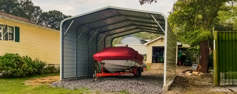 At Alan’s Factory Outlet, we offer durable boat storage buildings designed to protect your boat from the elements. Our prefab boat storage sheds, metal carports, and garages can be customized to fit your boat and your property—making it easy to store your vessel during the off-season.