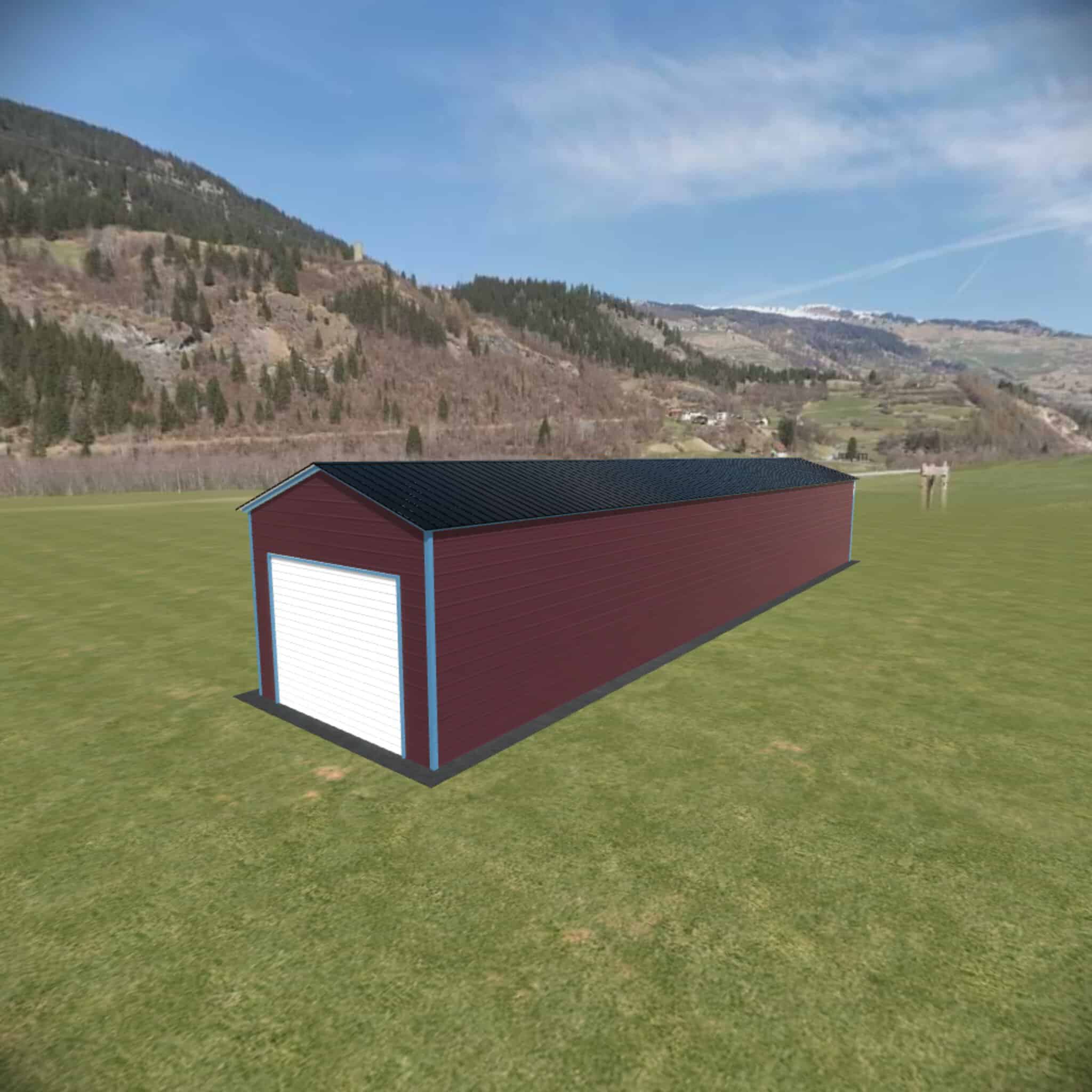 The 12×60 vertical roof metal garage comes standard with 9′ legs fully enclosed. The cost of the garage door, walk in door or window is not included in the price.