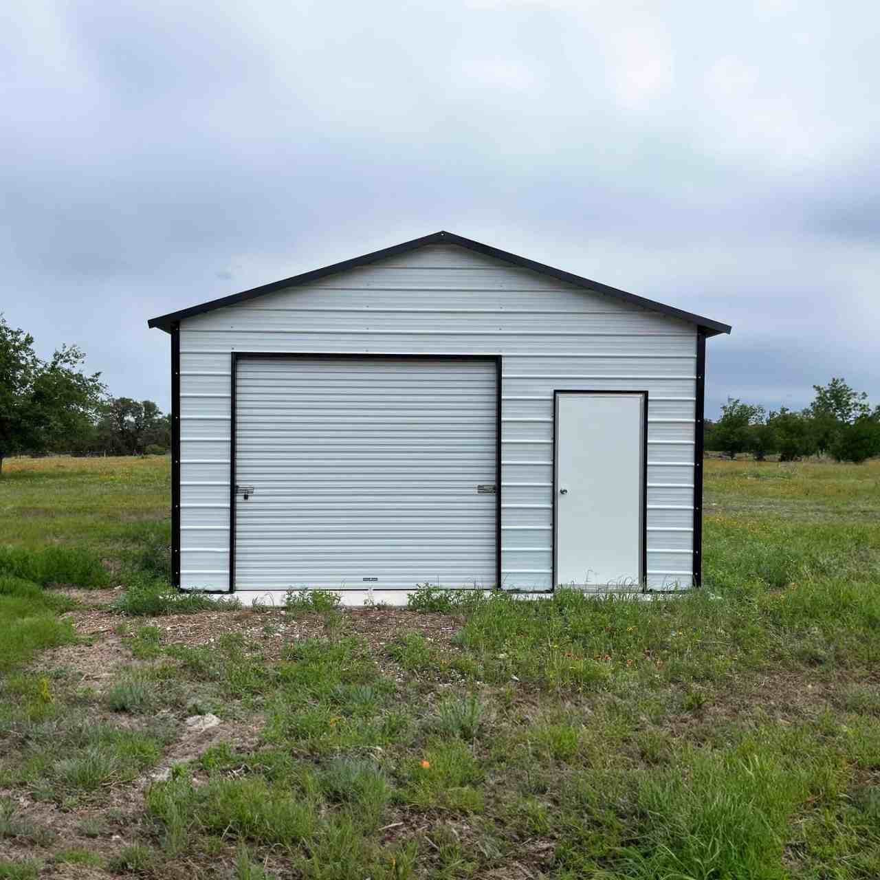 The 18×20 boxed eave style metal garage comes standard with 9′ legs fully enclosed. The cost of the garage door, walk in door or window is not included in the price.