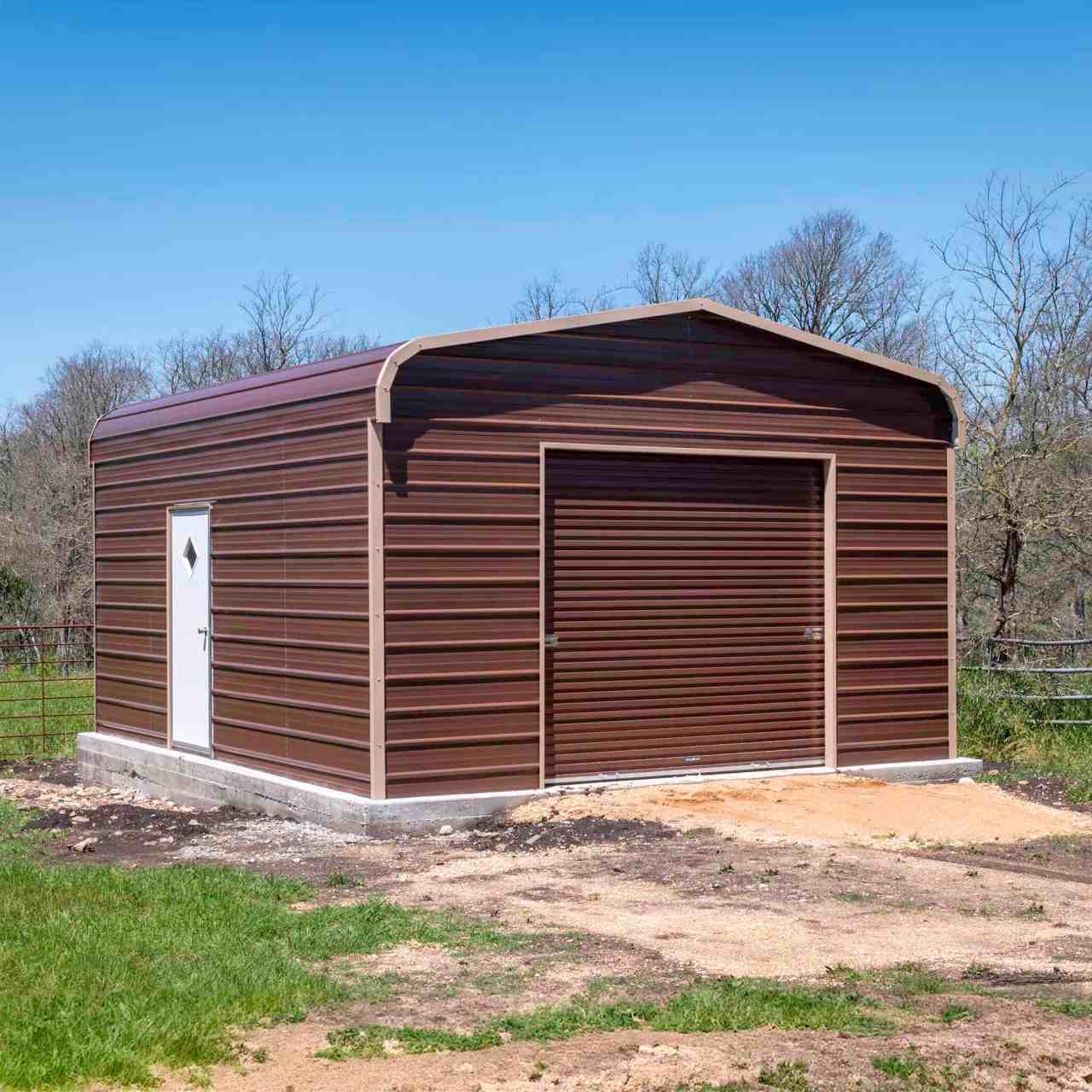 This affordable 18x20 metal building is made in the USA with American steel. With 360 square feet of space, it can be used as a 1-car garage, shop, storage building, or large shed.