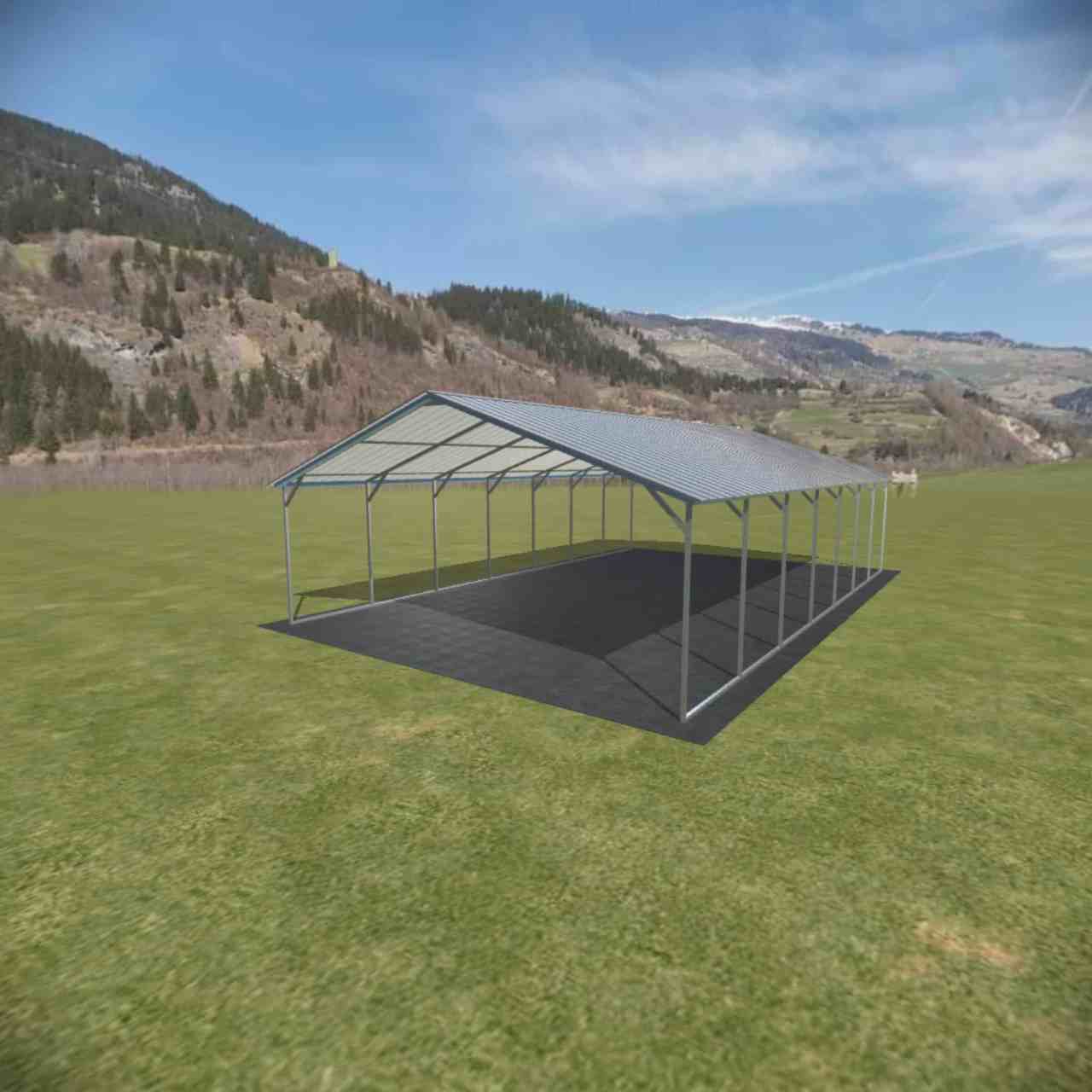 You can make it taller in 1′ increments with up to 16′ legs available. Sides can be left open, partially closed or fully closed. You can close one or both gables, close the back or fully enclose it and turn it into a metal garage.