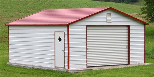 The metal tubing on the metal garage for sale come with 14 ga tubing which is 2 1/2″ by 2 1/2″ square tubing or you can upgrade to the 150 mph – 50 PSF with 12 ga tubing which comes 2 1/4″ by 2 1/4″ tubing. The framing on the optional thicker 12 gauge tubing comes with a 20 year rust through warranty.