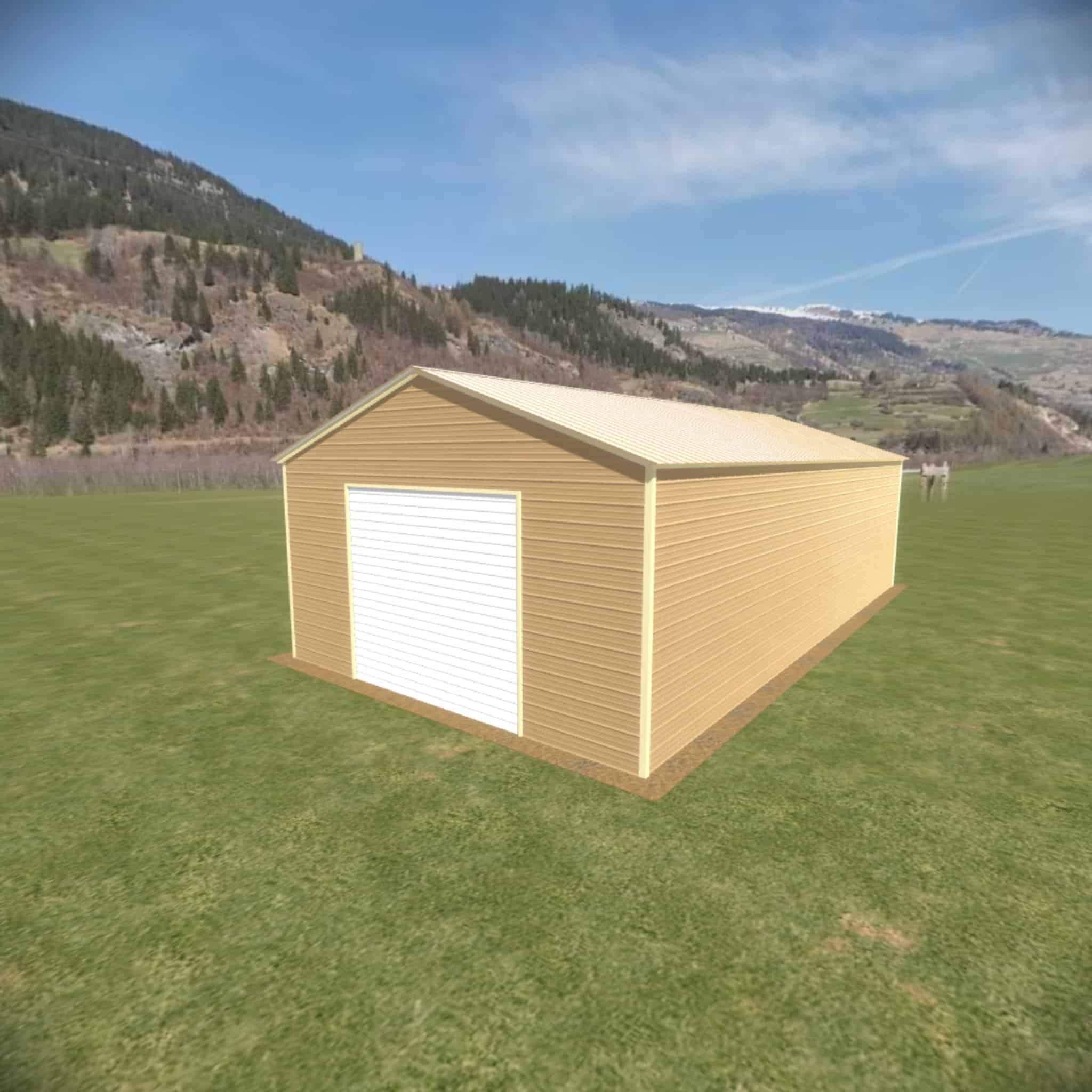 The 18×35 boxed eave style metal garage comes standard with 9′ legs fully enclosed. The cost of the garage door, walk in door or window is not included in the price.