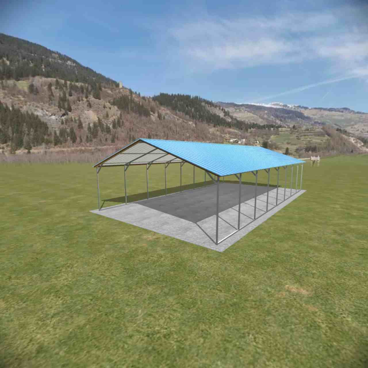 You can make it taller in 1′ increments with up to 16′ legs available. Sides can be left open, partially closed or fully closed. You can close one or both gables, close the back or fully enclose it and turn it into a metal garage.