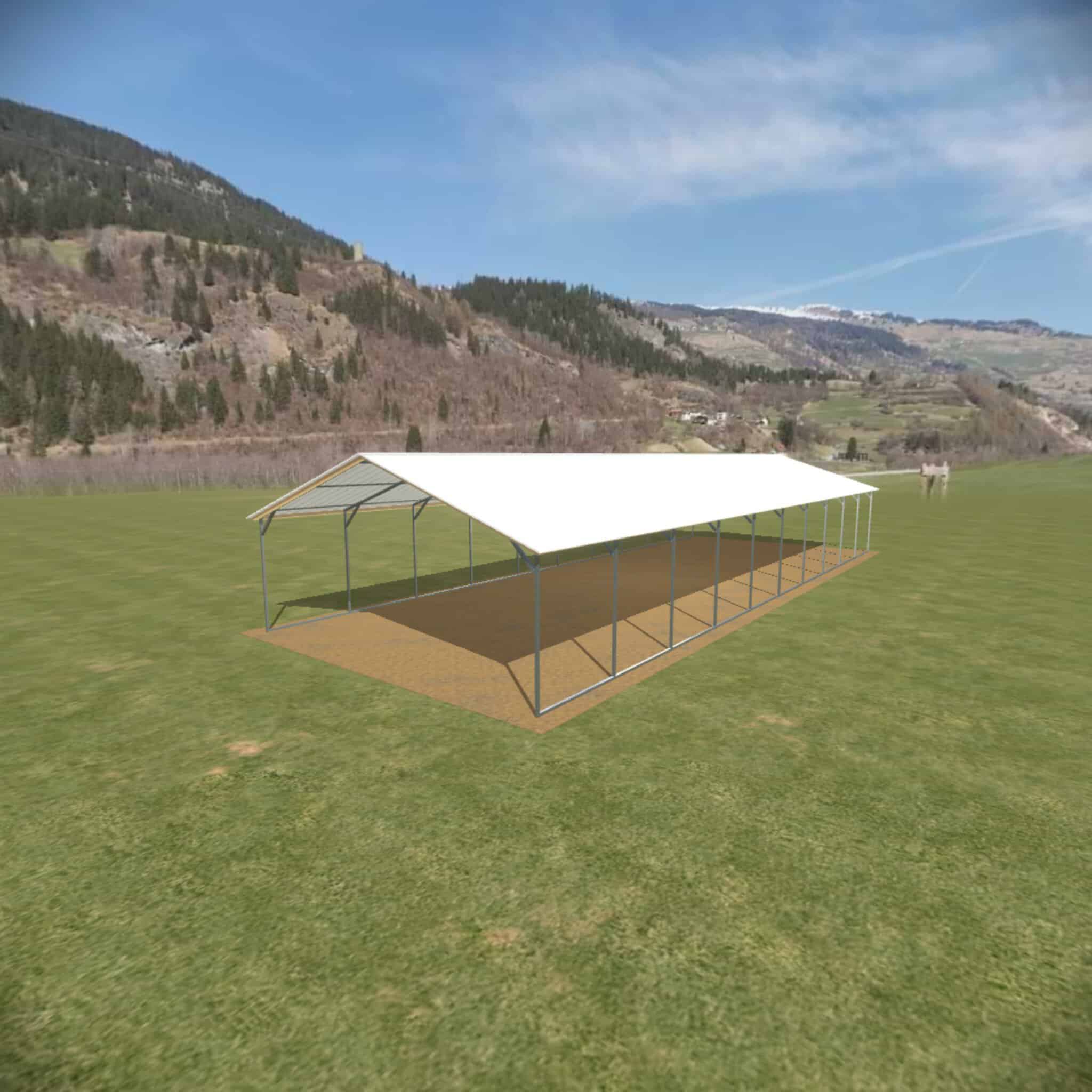 You can make it taller in 1′ increments with up to 16′ legs available. Sides can be left open, partially closed or fully closed. You can close one or both gables, close the back or fully enclose it and turn it into a metal garage.