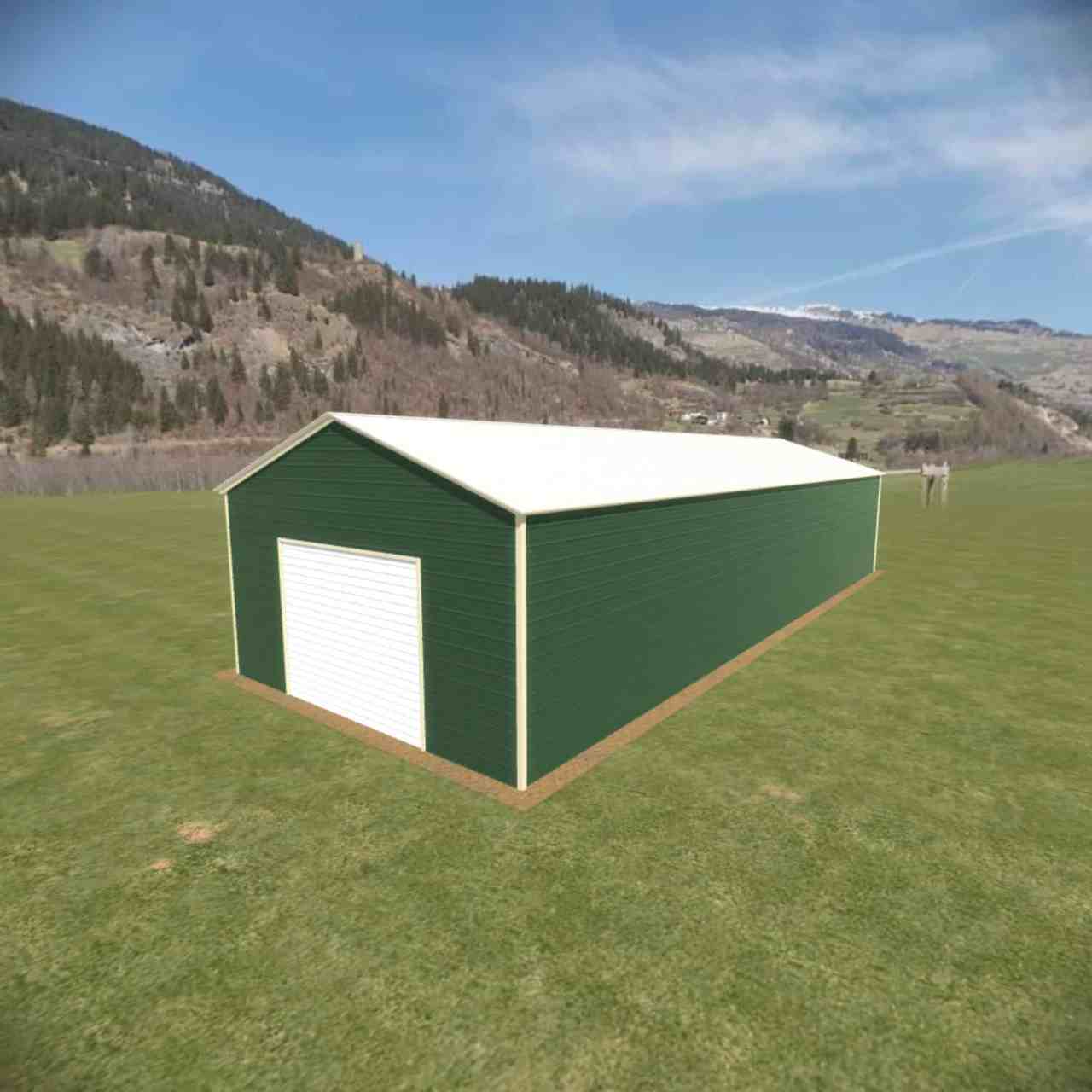 The 18×50 vertical roof metal garage comes standard with 9′ legs fully enclosed. The cost of the garage door, walk in door or window is not included in the price.