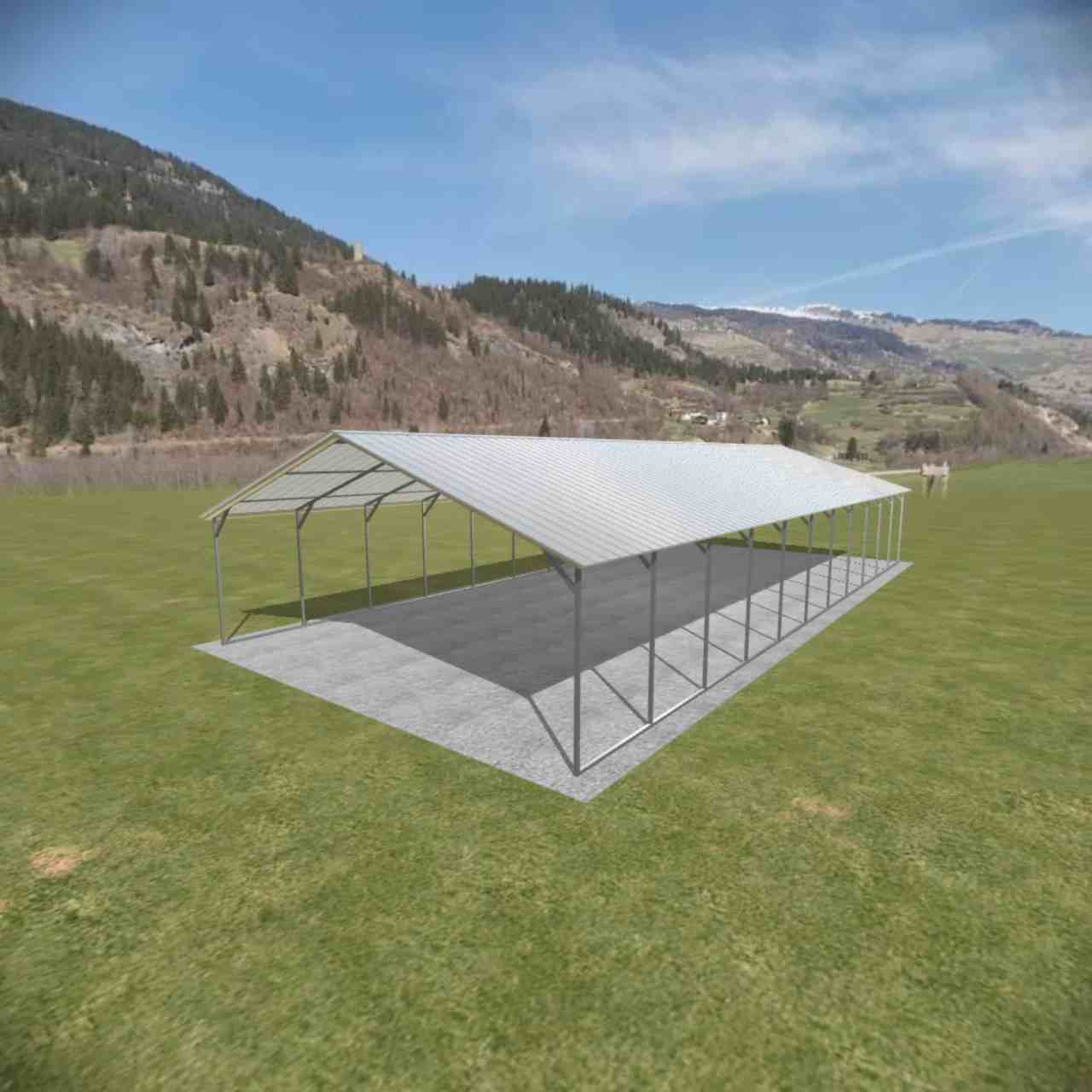 You can make it taller in 1′ increments with up to 16′ legs available. Sides can be left open, partially closed or fully closed. You can close one or both gables, close the back or fully enclose it and turn it into a metal garage.
