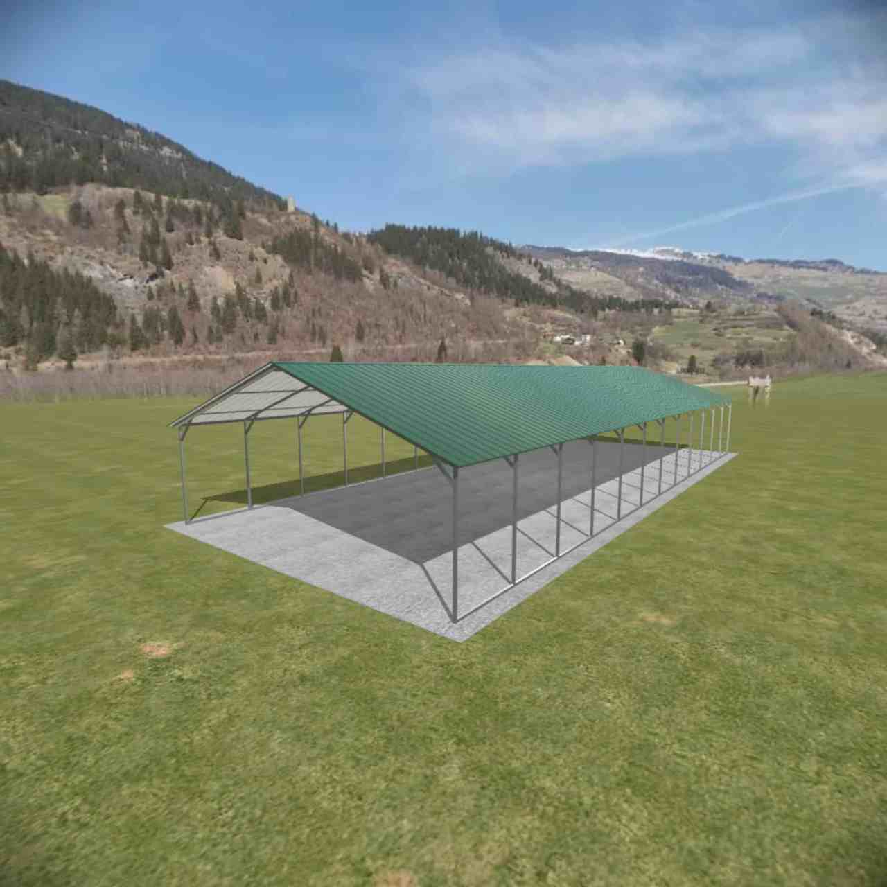 You can make it taller in 1′ increments with up to 16′ legs available. Sides can be left open, partially closed or fully closed. You can close one or both gables, close the back or fully enclose it and turn it into a metal garage.