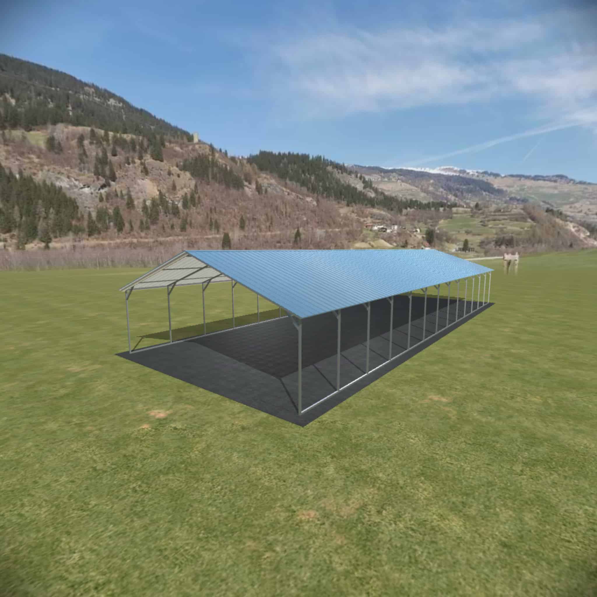You can make it taller in 1′ increments with up to 16′ legs available. Sides can be left open, partially closed or fully closed. You can close one or both gables, close the back or fully enclose it and turn it into a metal garage.