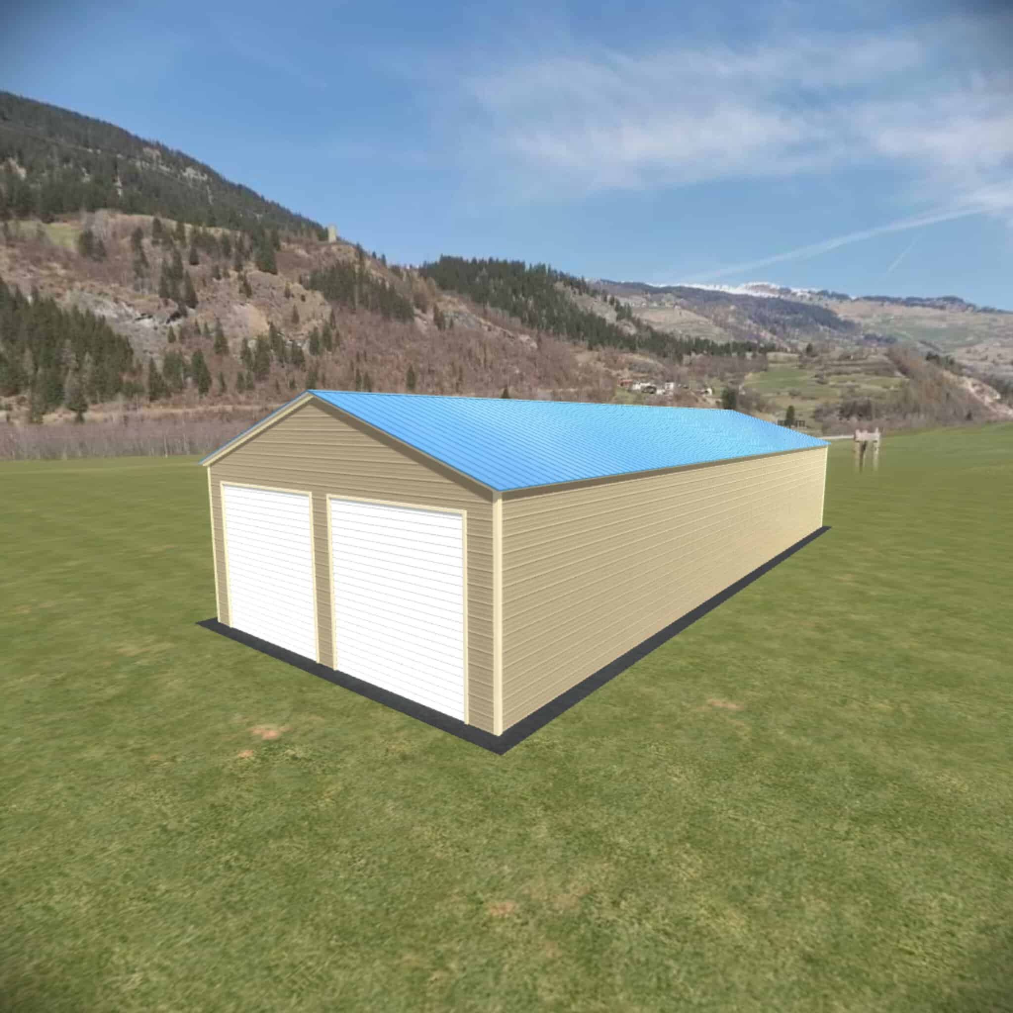 The 20×55 vertical style metal garage comes standard with 9′ legs fully enclosed. The cost of the garage door, walk in door or window is not included in the price.