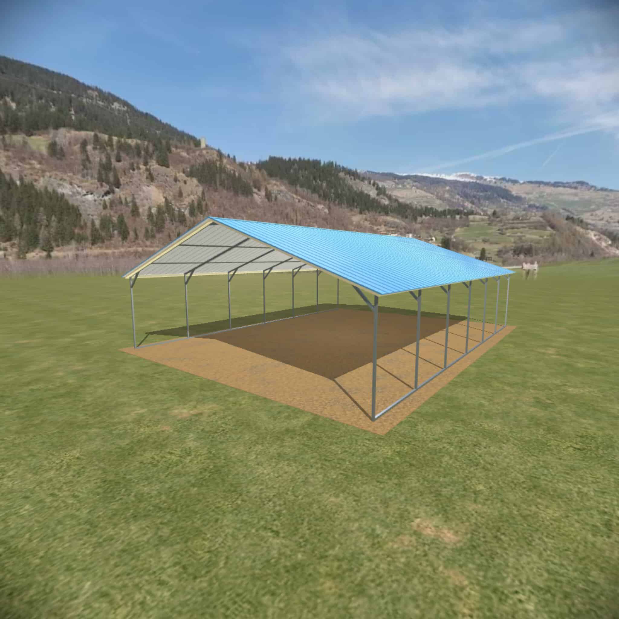 You can make it taller in 1′ increments with up to 16′ legs available. Sides can be left open, partially closed or fully closed. You can close one or both gables, close the back or fully enclose it and turn it into a metal garage.