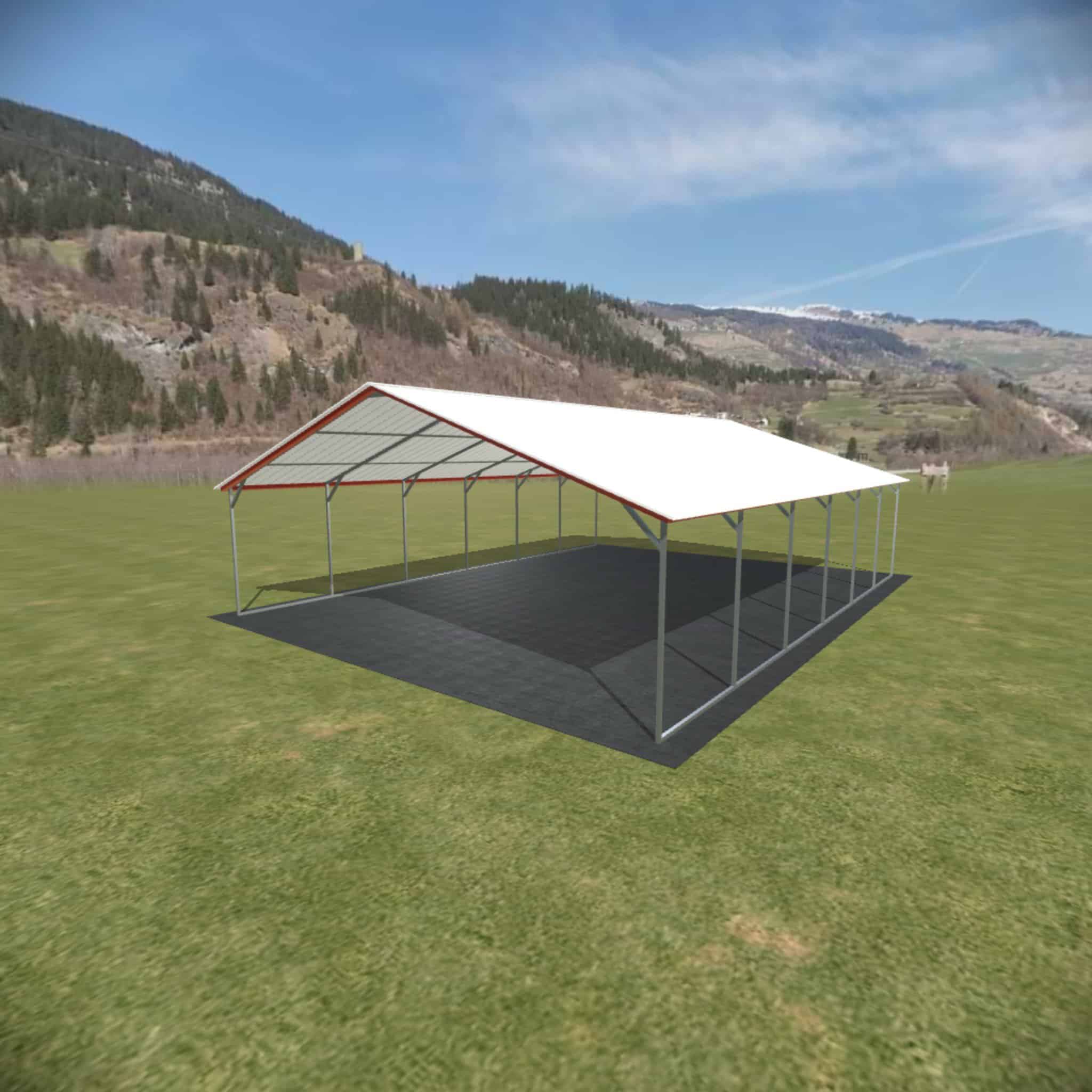 You can make it taller in 1′ increments with up to 16′ legs available. Sides can be left open, partially closed or fully closed. You can close one or both gables, close the back or fully enclose it and turn it into a metal garage.