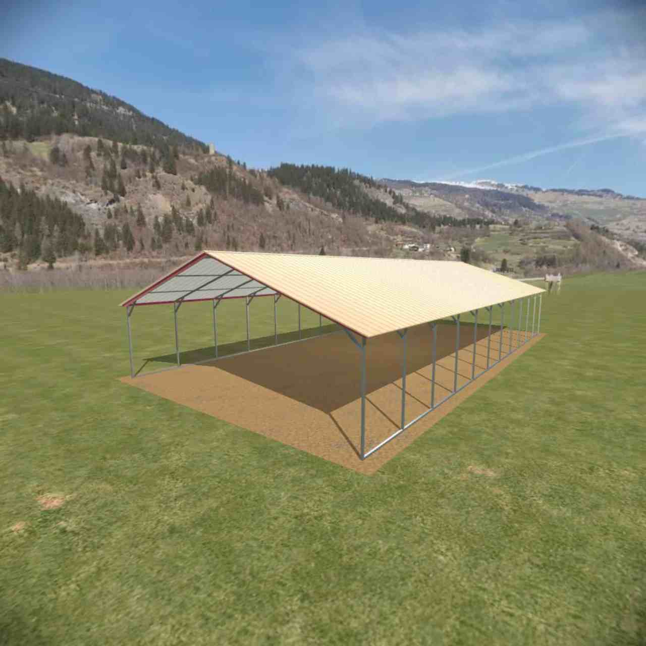 You can make it taller in 1′ increments with up to 16′ legs available. Sides can be left open, partially closed or fully closed. You can close one or both gables, close the back or fully enclose it and turn it into a metal garage.