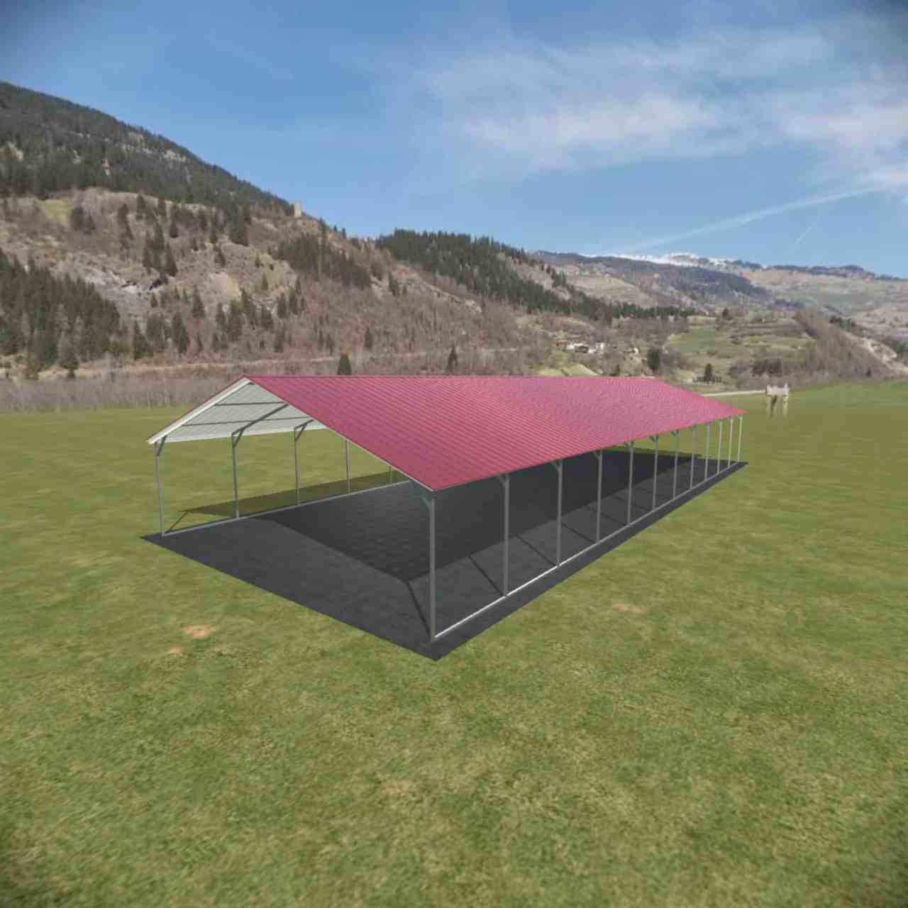 You can make it taller in 1′ increments with up to 16′ legs available. Sides can be left open, partially closed or fully closed. You can close one or both gables, close the back or fully enclose it and turn it into a metal garage.