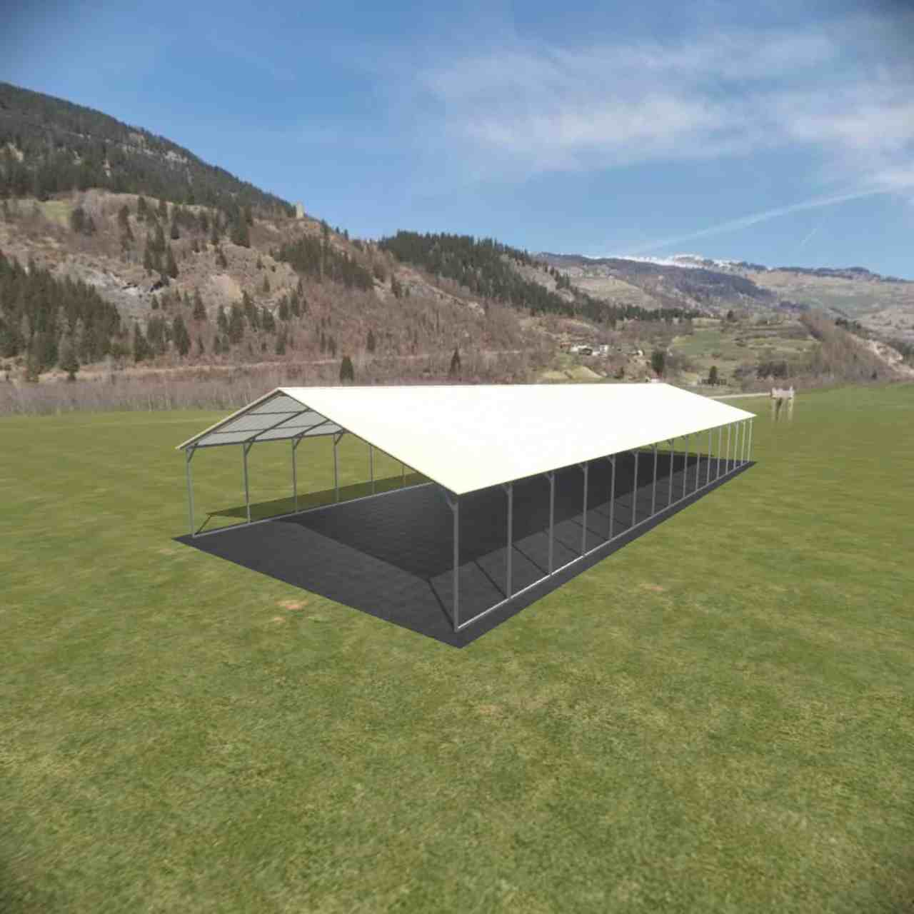 You can make it taller in 1′ increments with up to 16′ legs available. Sides can be left open, partially closed or fully closed. You can close one or both gables, close the back or fully enclose it and turn it into a metal garage.