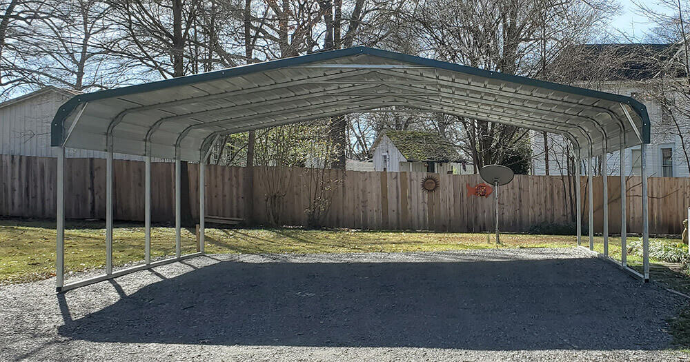 The 24 × 20 Regular Style Metal Carport comes standard with a 6’ tall side/leg height.