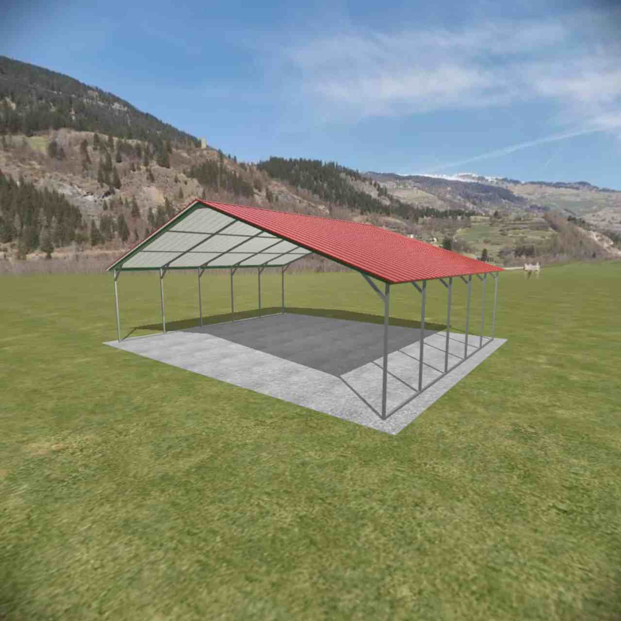 You can make it taller in 1′ increments with up to 16′ legs available. Sides can be left open, partially closed or fully closed. You can close one or both gables, close the back or fully enclose it and turn it into a metal garage.