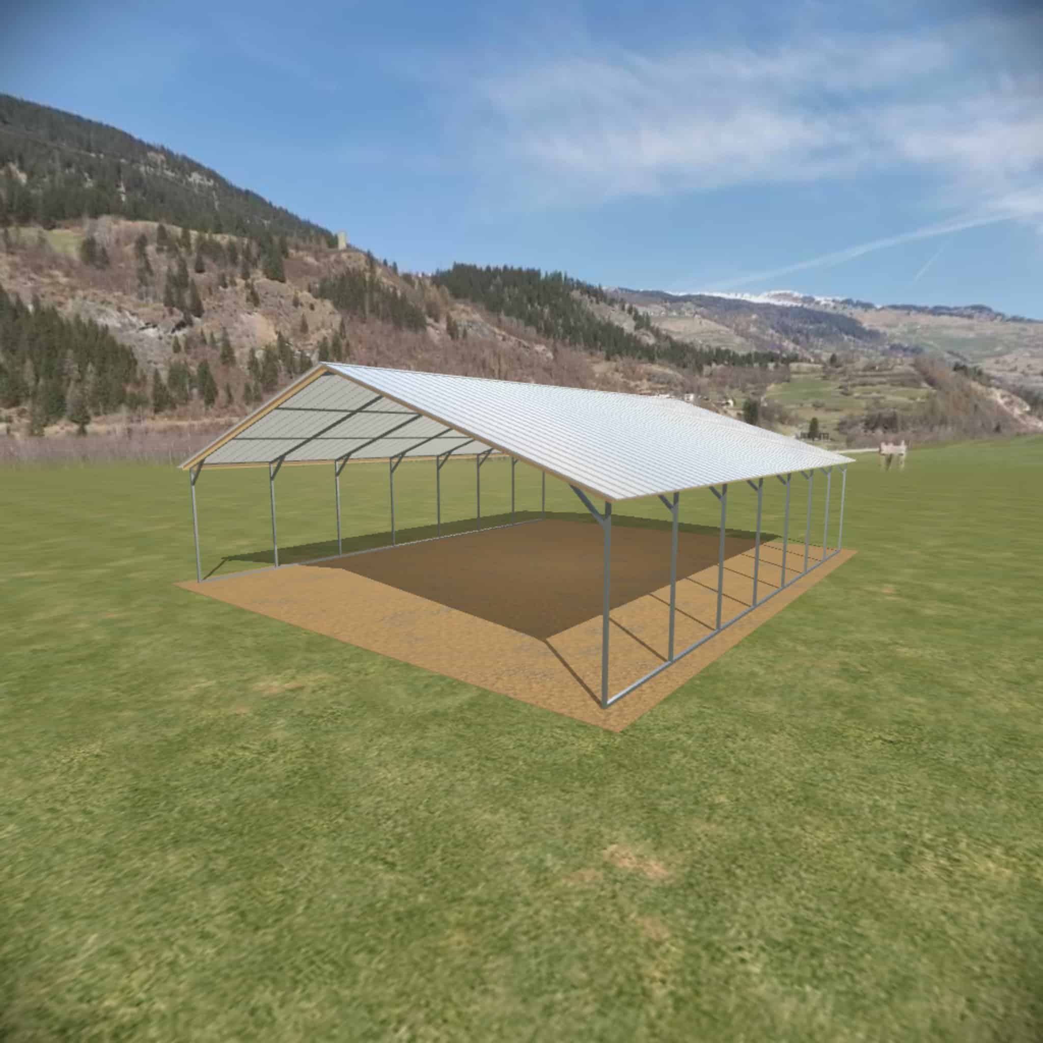 You can make it taller in 1′ increments with up to 16′ legs available. Sides can be left open, partially closed or fully closed. You can close one or both gables, close the back or fully enclose it and turn it into a metal garage.