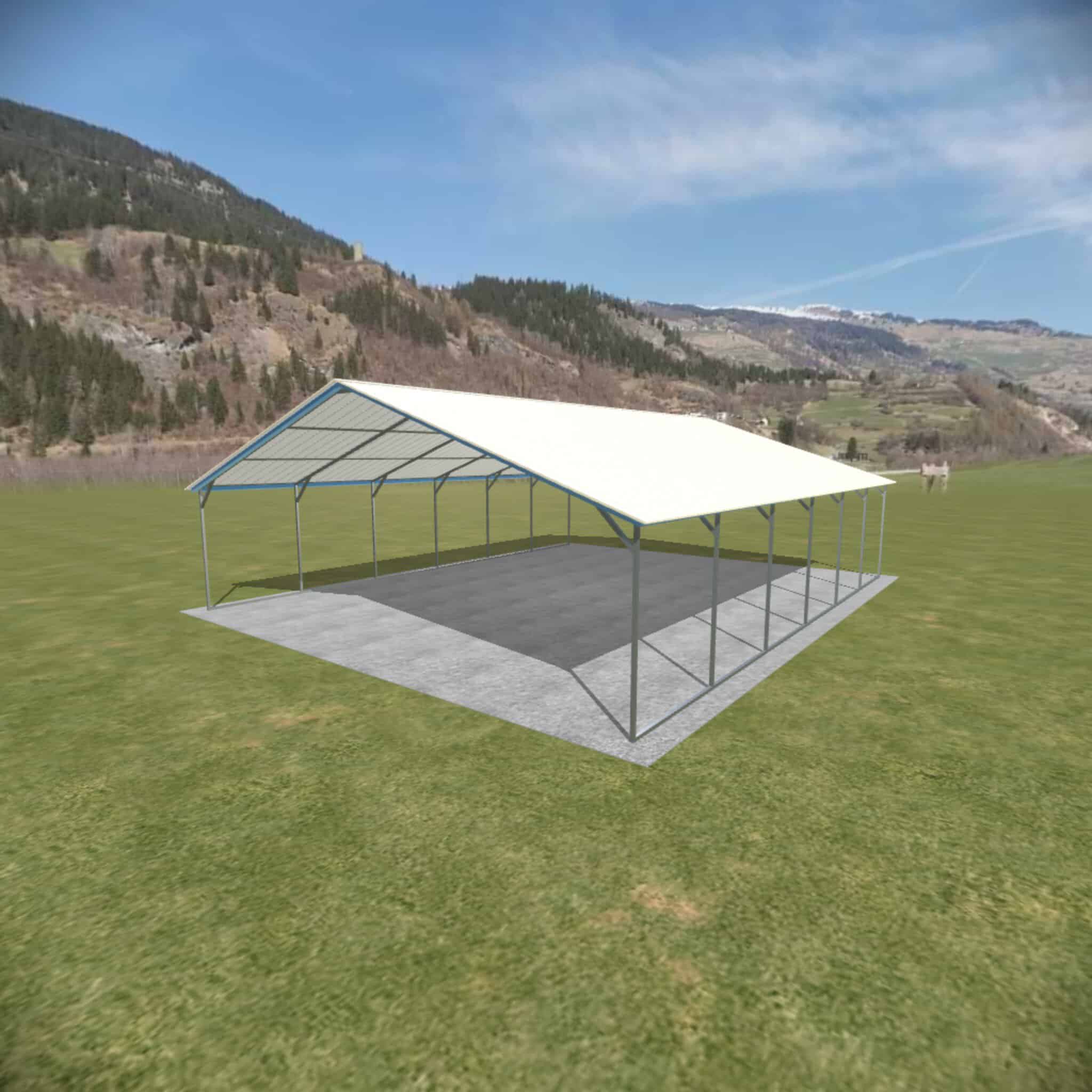 You can make it taller in 1′ increments with up to 16′ legs available. Sides can be left open, partially closed or fully closed. You can close one or both gables, close the back or fully enclose it and turn it into a metal garage.