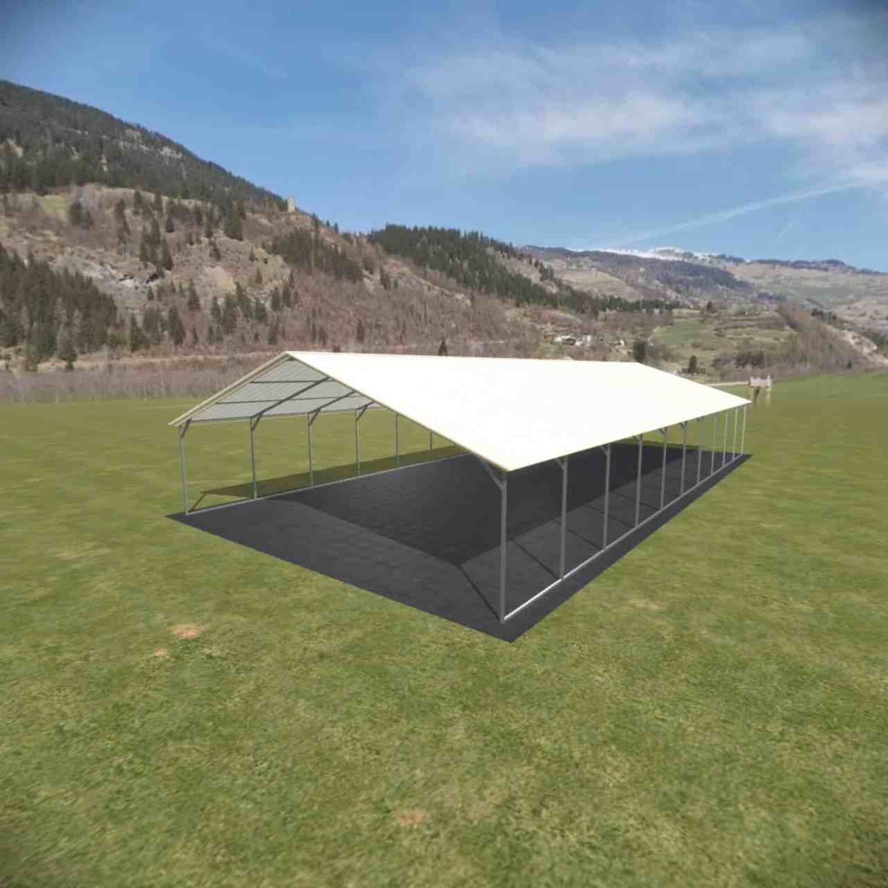 You can make it taller in 1′ increments with up to 16′ legs available. Sides can be left open, partially closed or fully closed. You can close one or both gables, close the back or fully enclose it and turn it into a metal garage.
