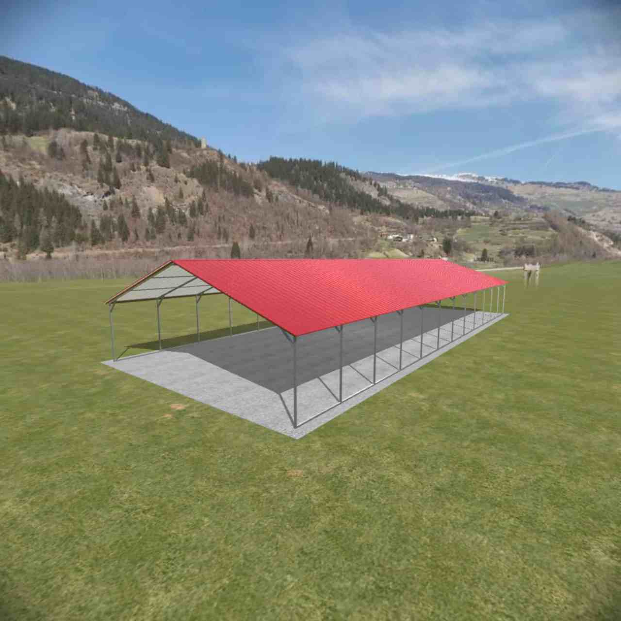 You can make it taller in 1′ increments with up to 16′ legs available. Sides can be left open, partially closed or fully closed. You can close one or both gables, close the back or fully enclose it and turn it into a metal garage.