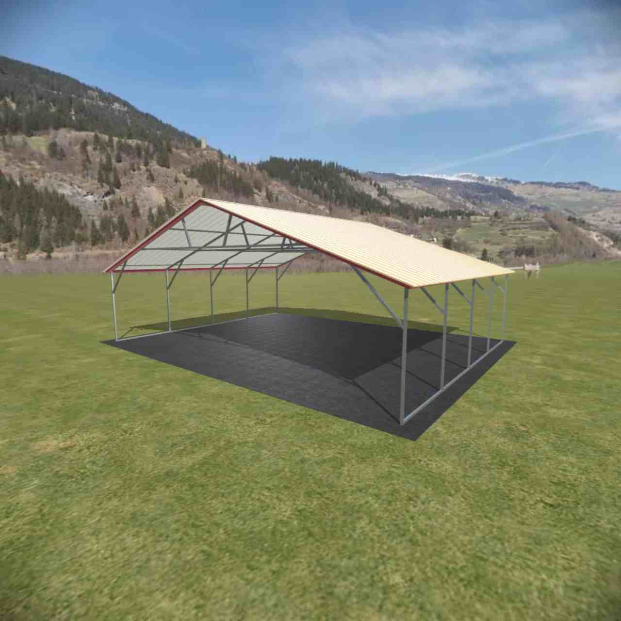 You can make it taller in 1′ increments with up to 16′ legs available. Sides can be left open, partially closed or fully closed. You can close one or both gables, close the back or fully enclose it and turn it into a metal garage.