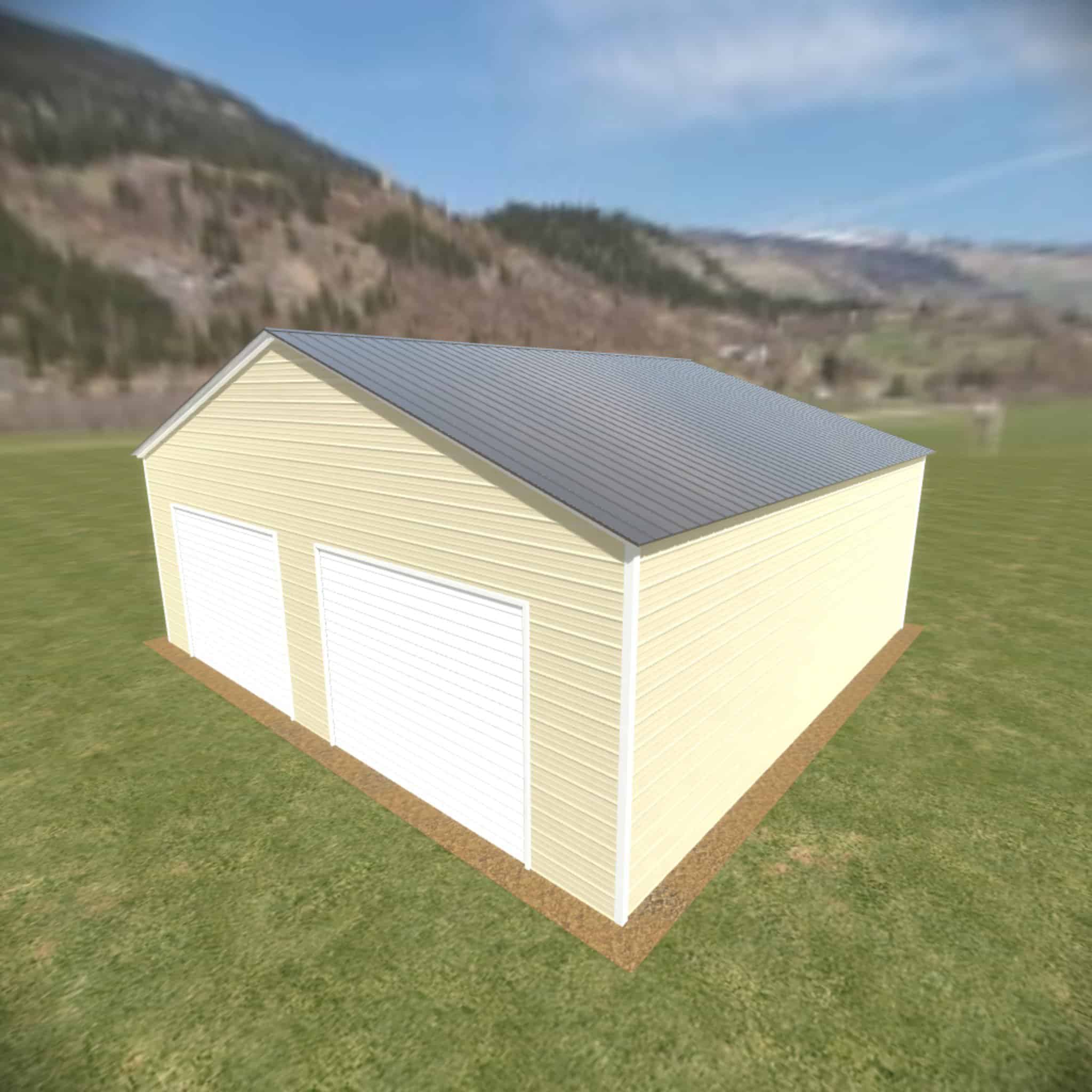 The 26×25} vertical roof metal garage comes standard with 9′ legs fully enclosed. The cost of the garage door, walk in door or window is not included in the price.