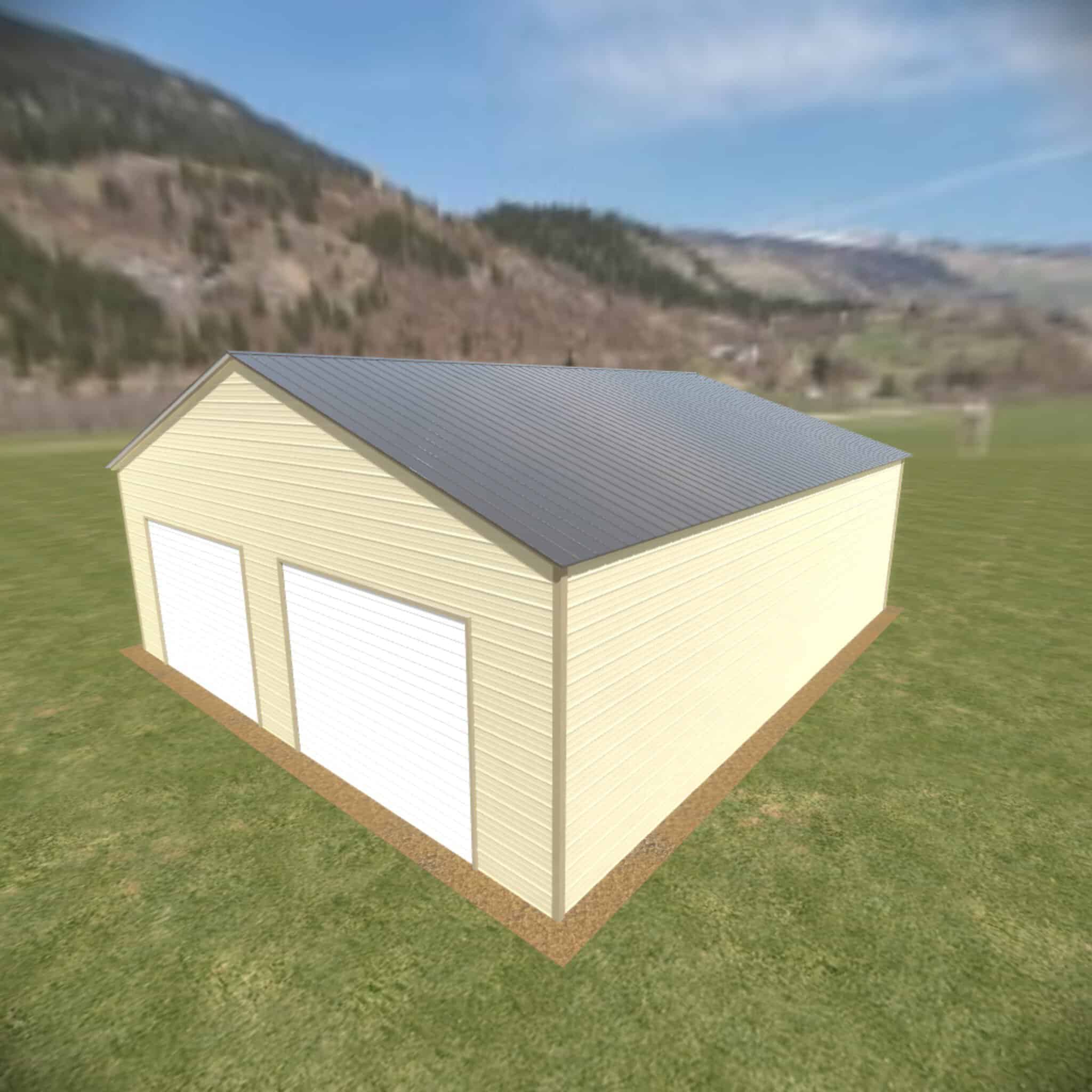 The 26×30} vertical roof metal garage comes standard with 9′ legs fully enclosed. The cost of the garage door, walk in door or window is not included in the price.