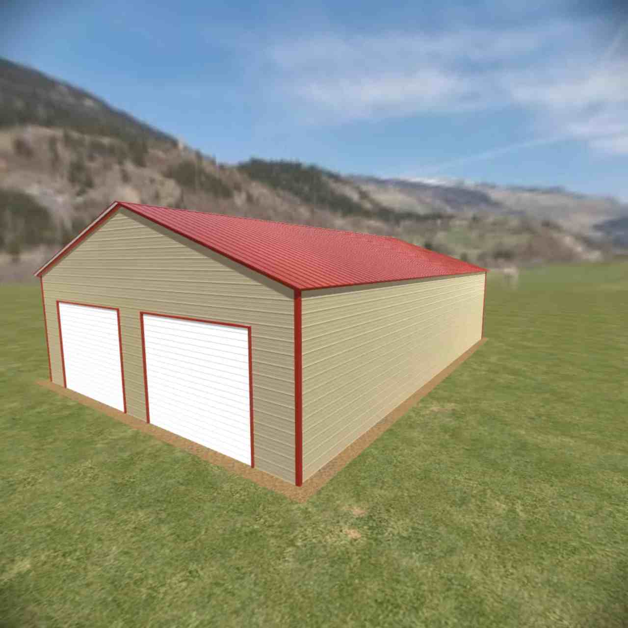 The 26×40} vertical roof metal garage comes standard with 9′ legs fully enclosed. The cost of the garage door, walk in door or window is not included in the price.