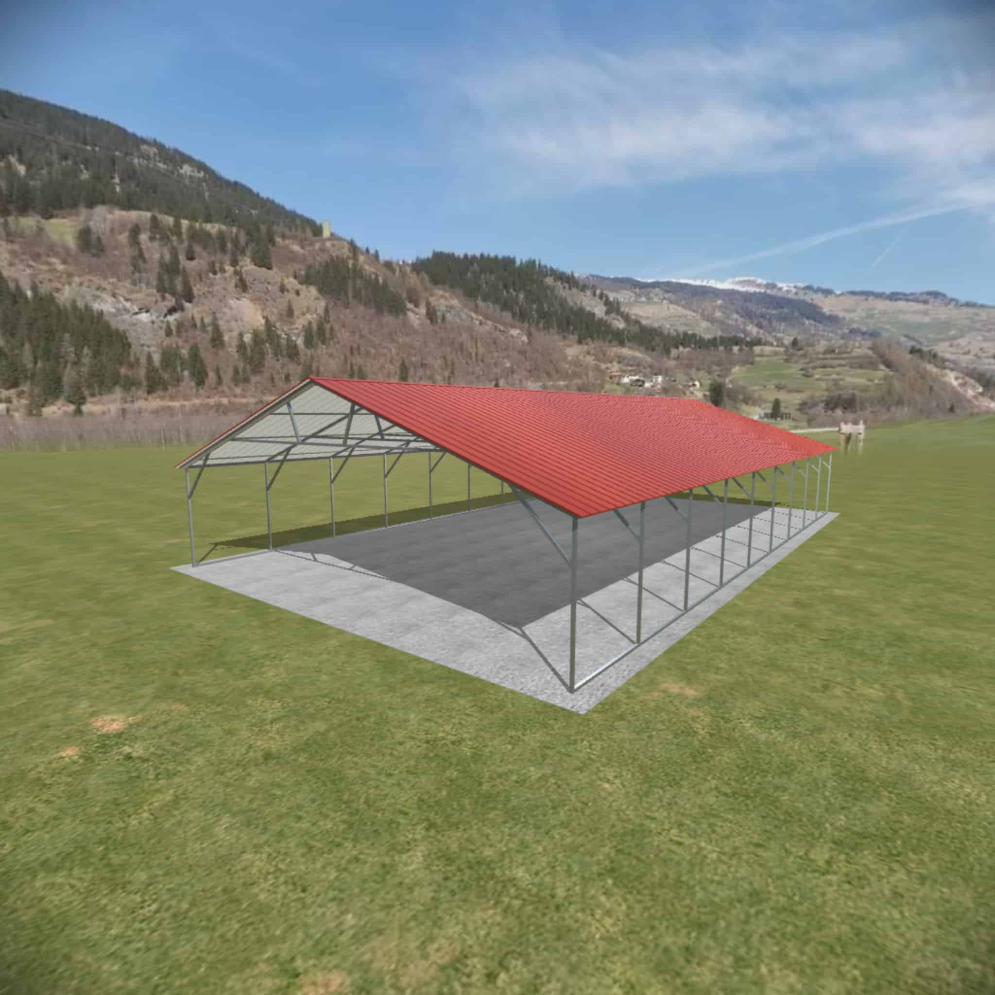 You can make it taller in 1′ increments with up to 16′ legs available. Sides can be left open, partially closed or fully closed. You can close one or both gables, close the back or fully enclose it and turn it into a metal garage.