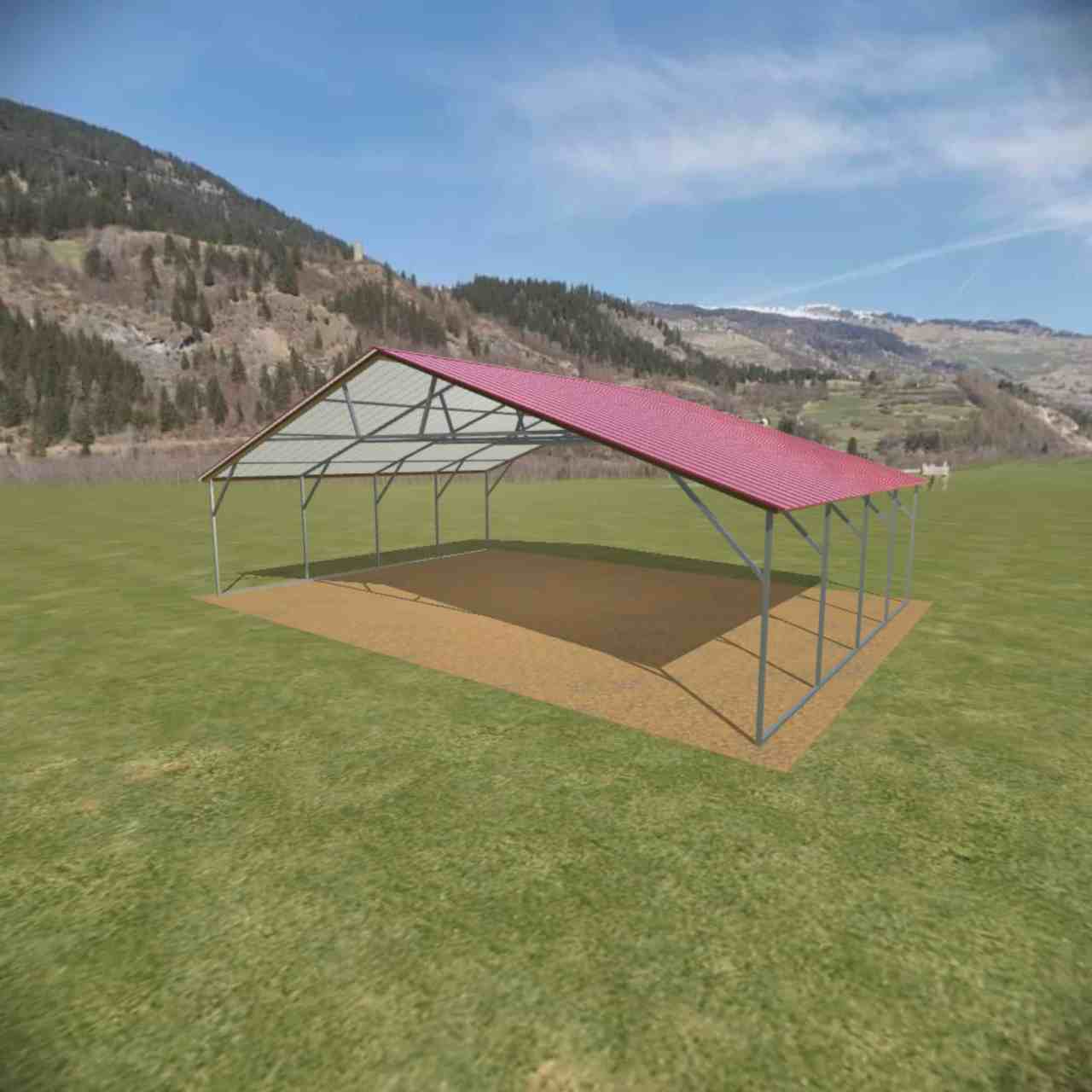 This vertical steel carport is shown with options of panel on both sides and two gables.