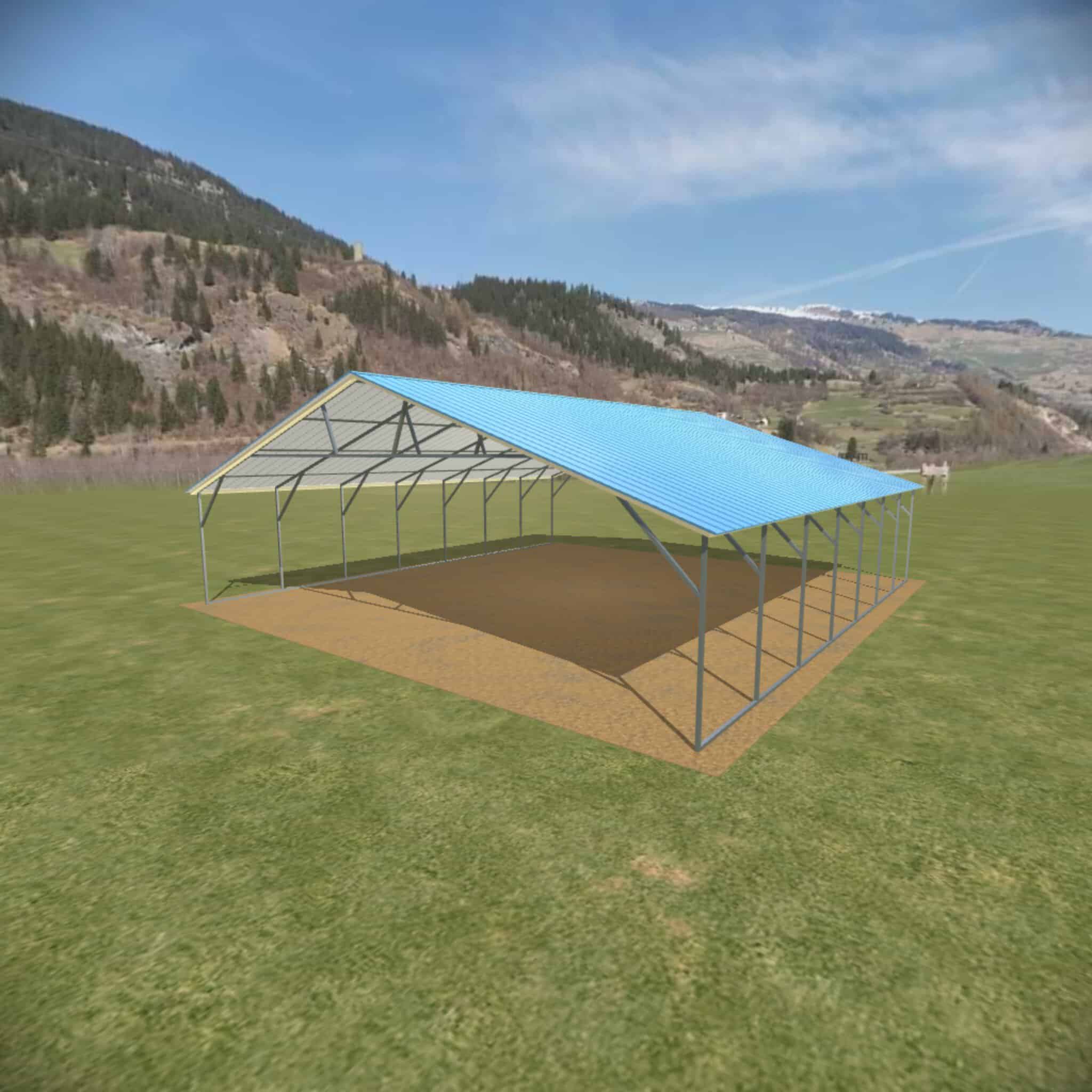 You can make it taller in 1′ increments with up to 16′ legs available. Sides can be left open, partially closed or fully closed. You can close one or both gables, close the back or fully enclose it and turn it into a metal garage.
