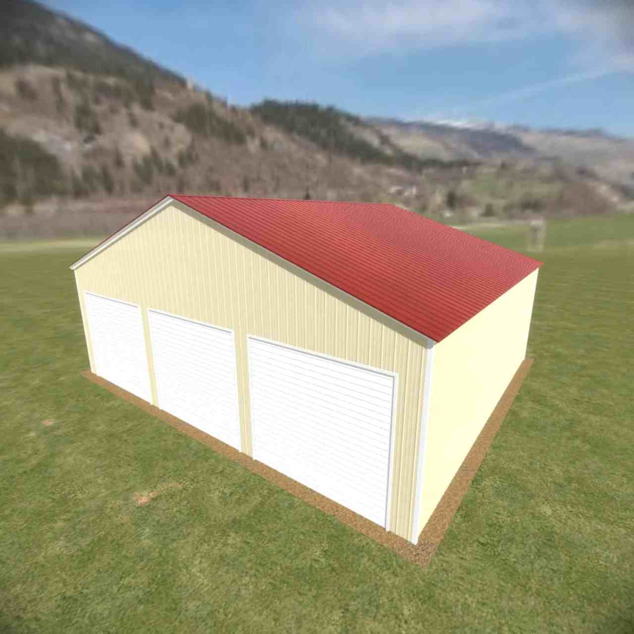 32 wide metal building with 16′ legs and 3 14×14 garage doors with optional deluxe two-tone.