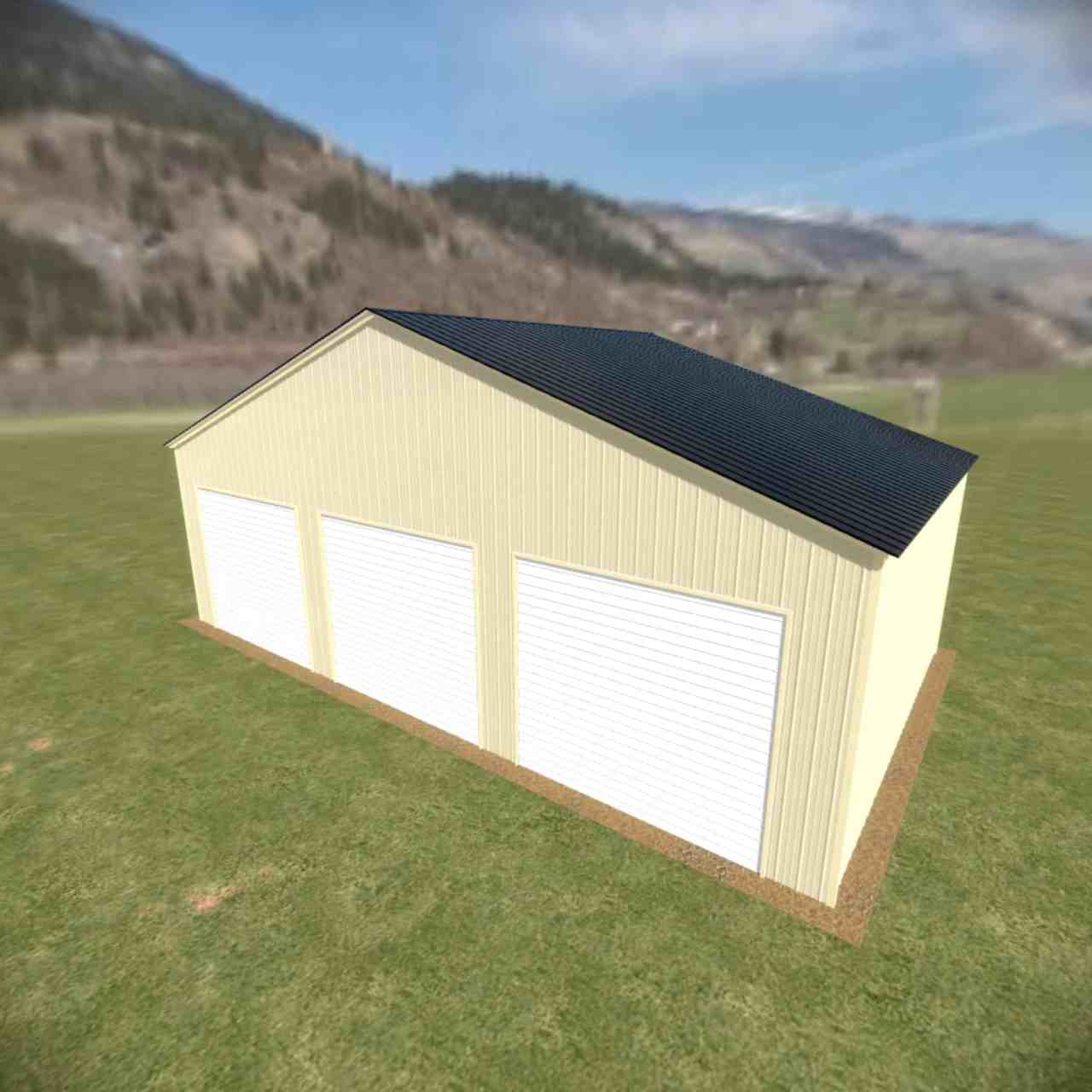 34 wide metal building with 16′ legs and 3 14×14 garage doors with optional deluxe two-tone.