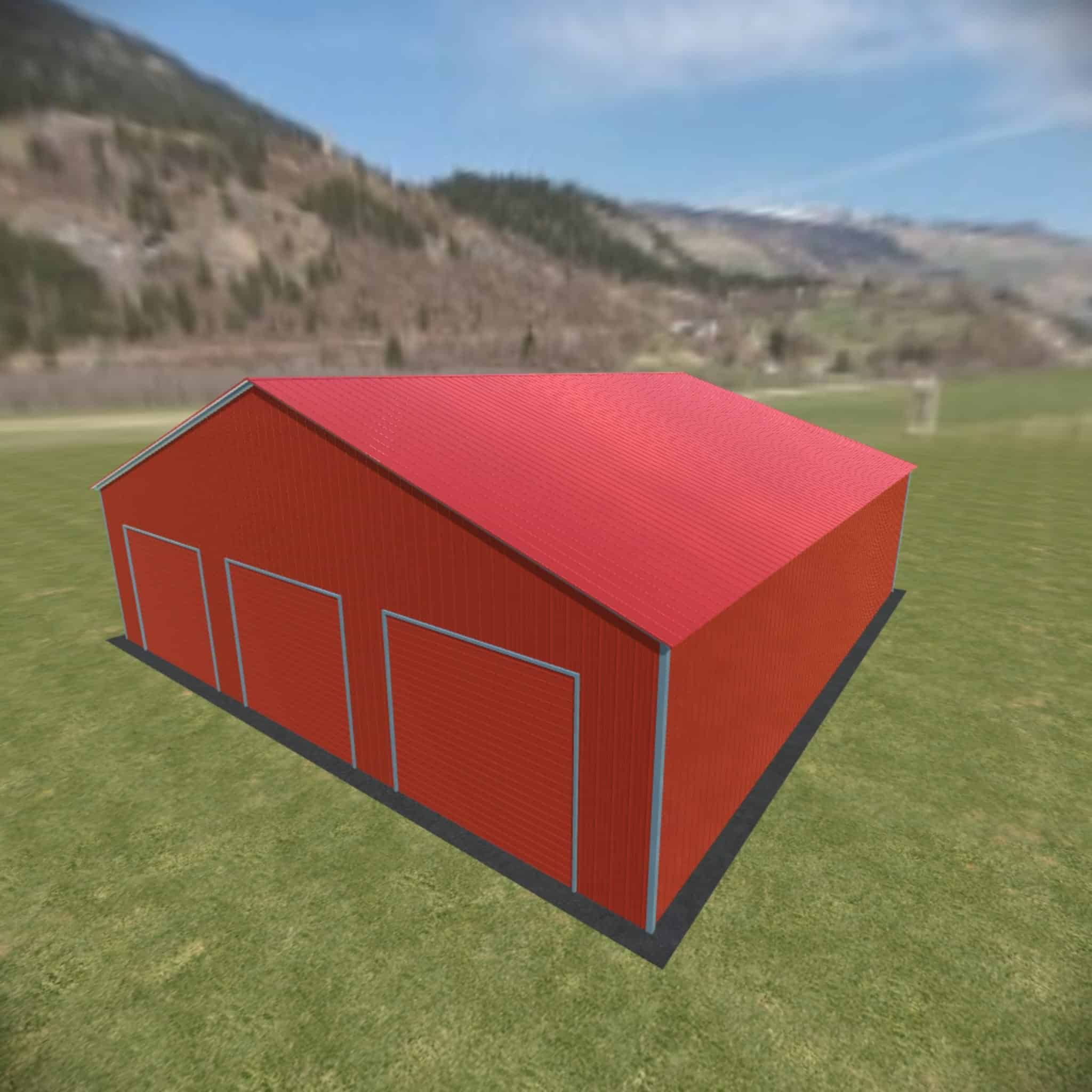 38 wide metal building with 16′ legs and 3 14×14 garage doors with optional deluxe two-tone.