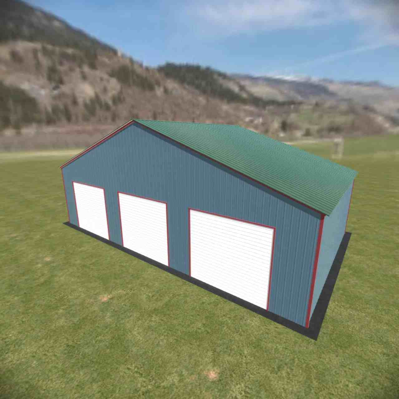 40 wide metal building with 16′ legs and 3 14×14 garage doors with optional deluxe two-tone.