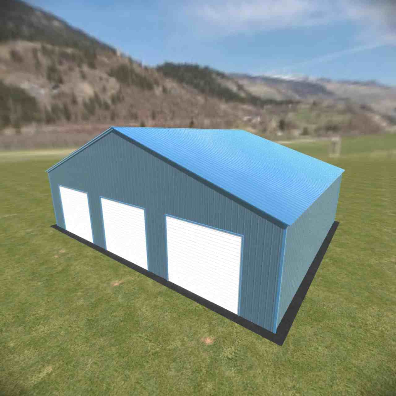 40 wide metal building with 16′ legs and 3 14×14 garage doors with optional deluxe two-tone.