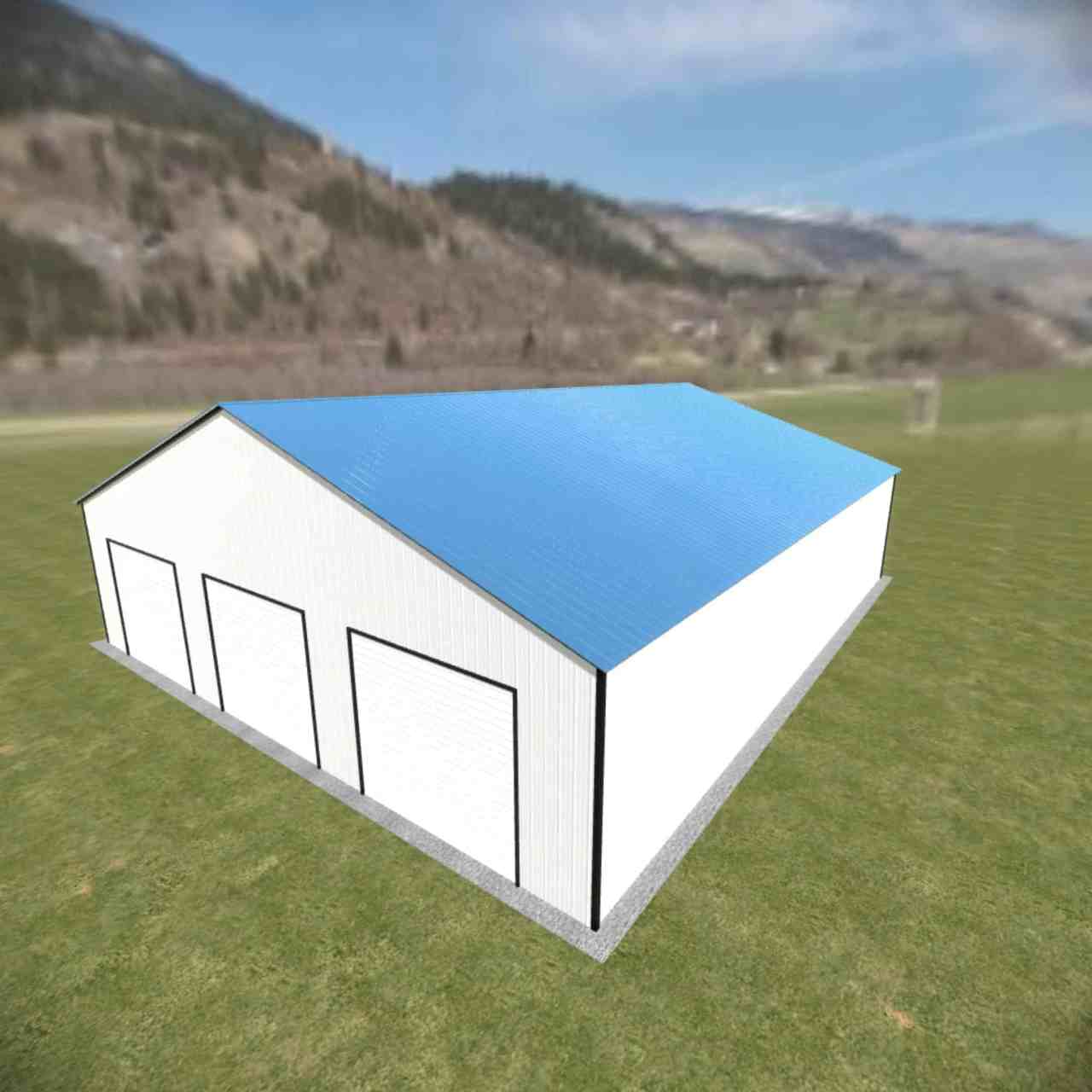 40 wide metal building with 16′ legs and 3 14×14 garage doors with optional deluxe two-tone.
