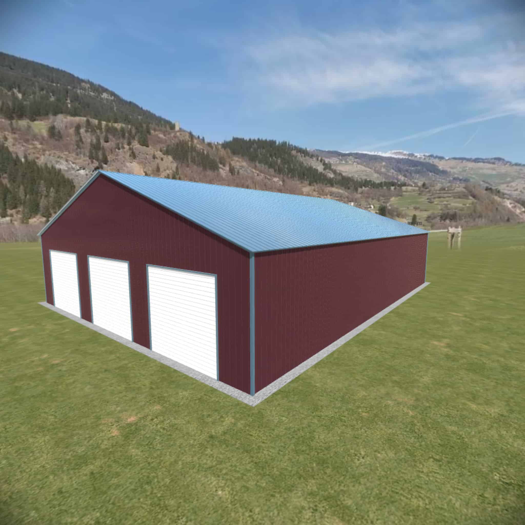 40 wide metal building with 16′ legs and 3 14×14 garage doors with optional deluxe two-tone.