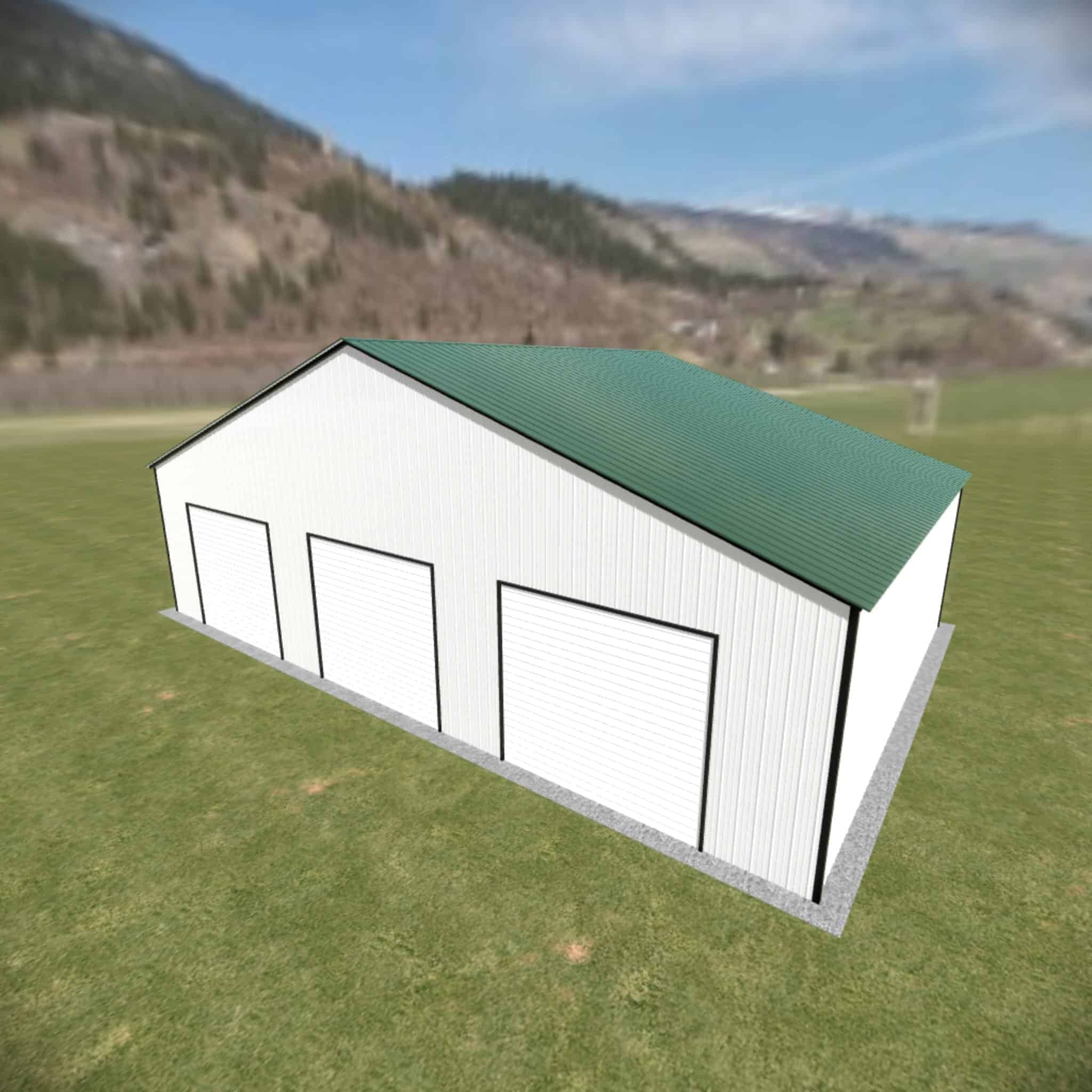 42 wide metal building with 16′ legs and 3 14×14 garage doors with optional deluxe two-tone.