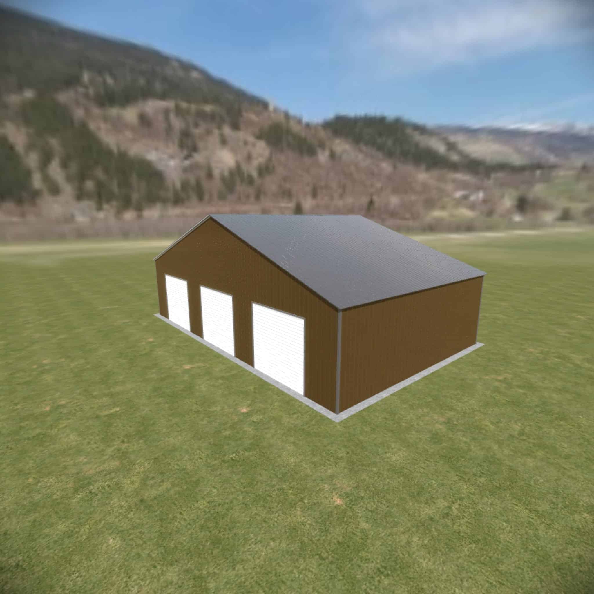 44 wide metal building with 16′ legs and 3 14×14 garage doors with optional deluxe two-tone.