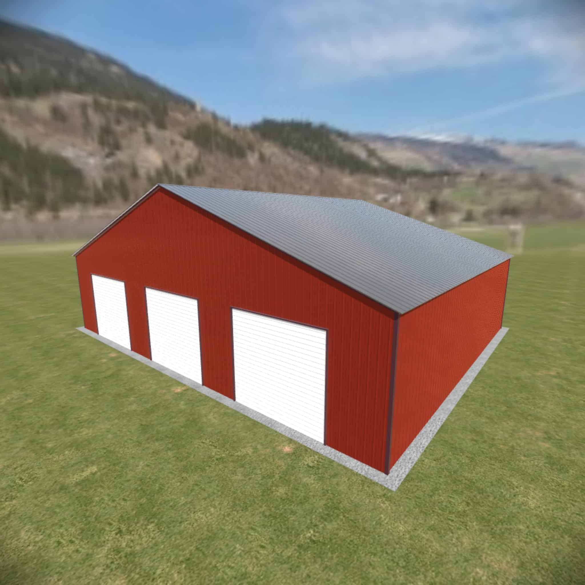 44 wide metal building with 16′ legs and 3 14×14 garage doors with optional deluxe two-tone.