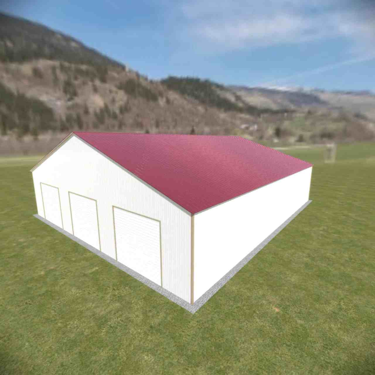 44 wide metal building with 16′ legs and 3 14×14 garage doors with optional deluxe two-tone.