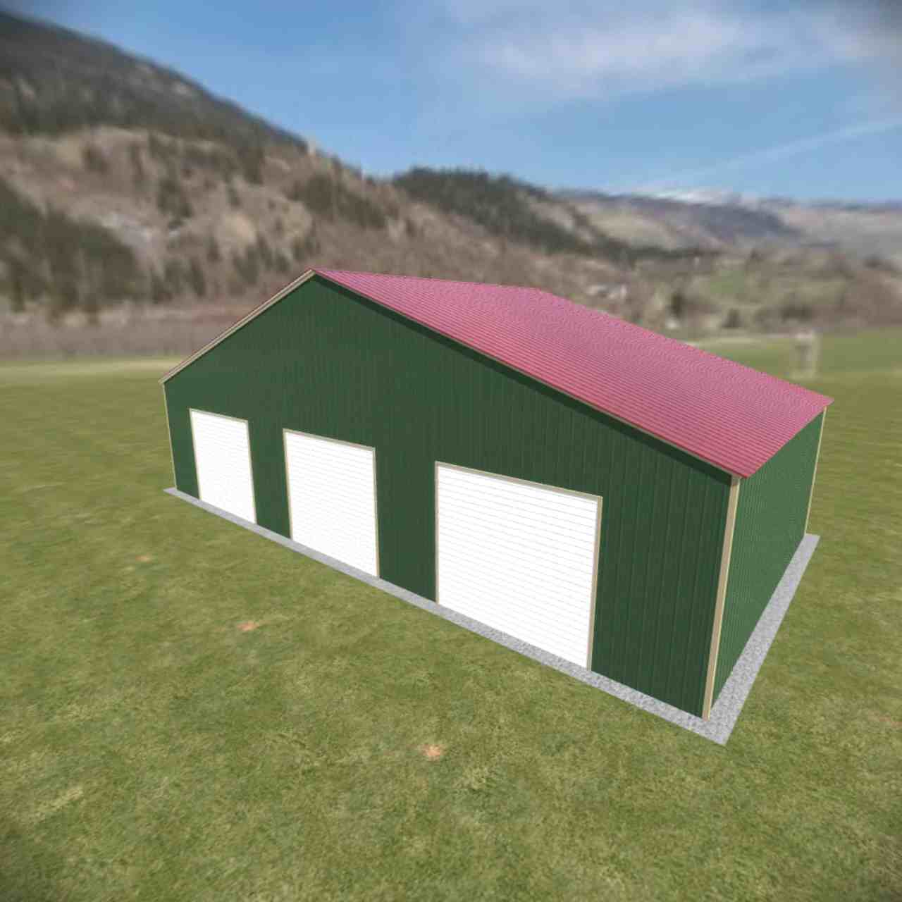 46 wide metal building with 16′ legs and 3 14×14 garage doors with optional deluxe two-tone.