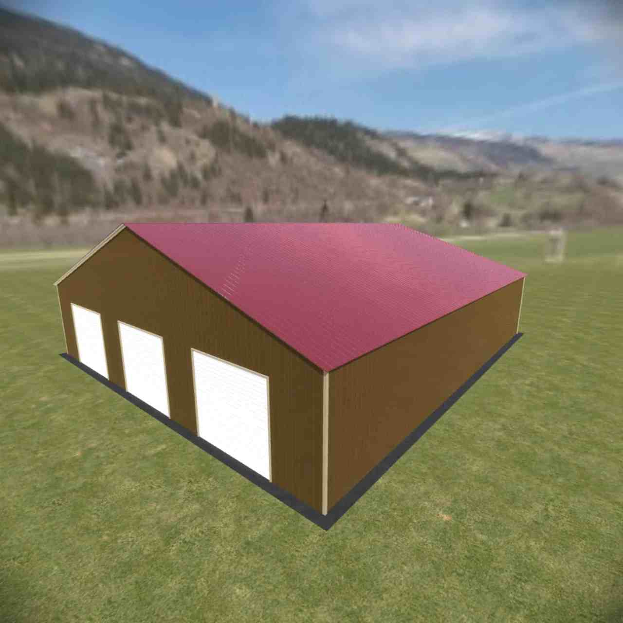 46 wide metal building with 16′ legs and 3 14×14 garage doors with optional deluxe two-tone.
