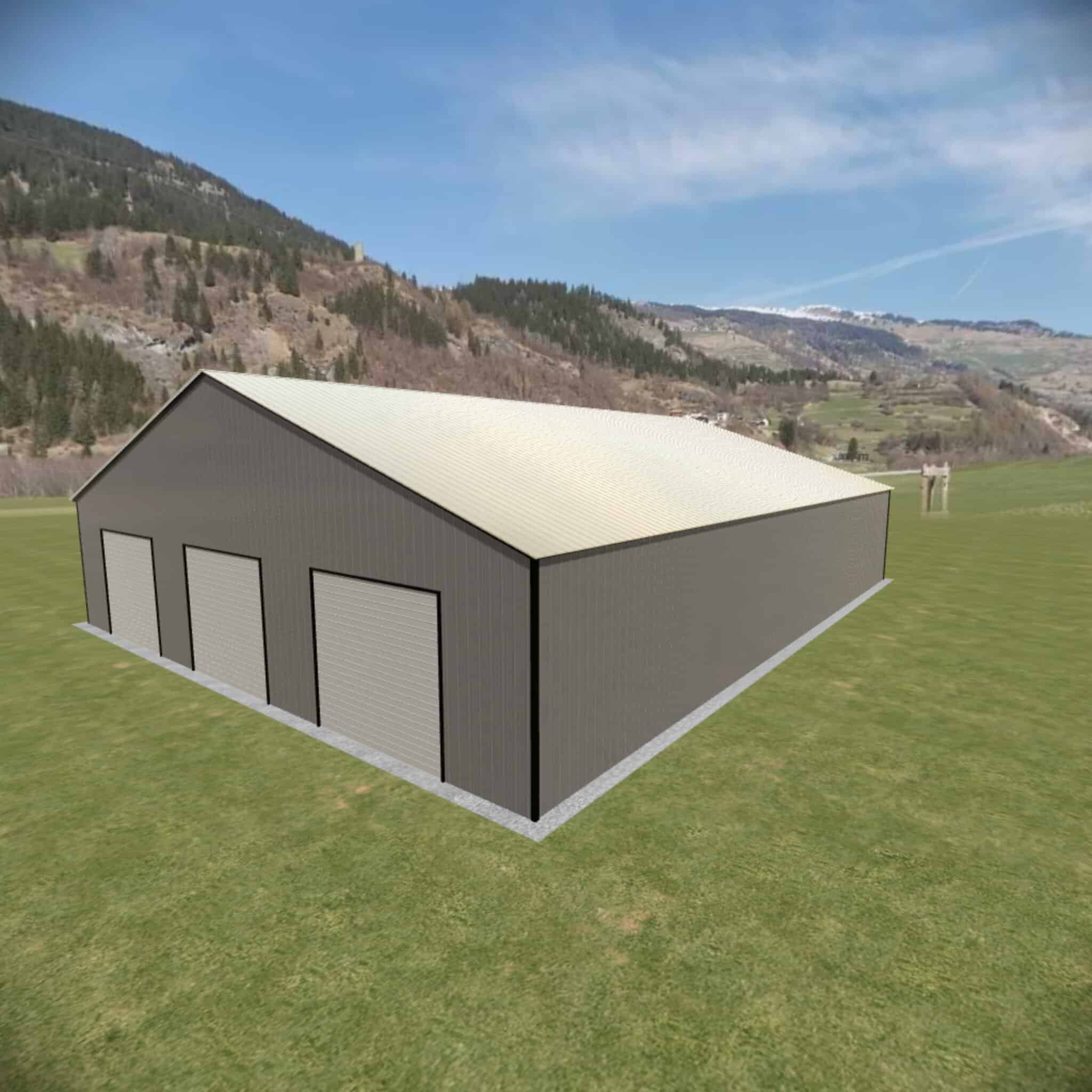46 wide metal building with 16′ legs and 3 14×14 garage doors with optional deluxe two-tone.