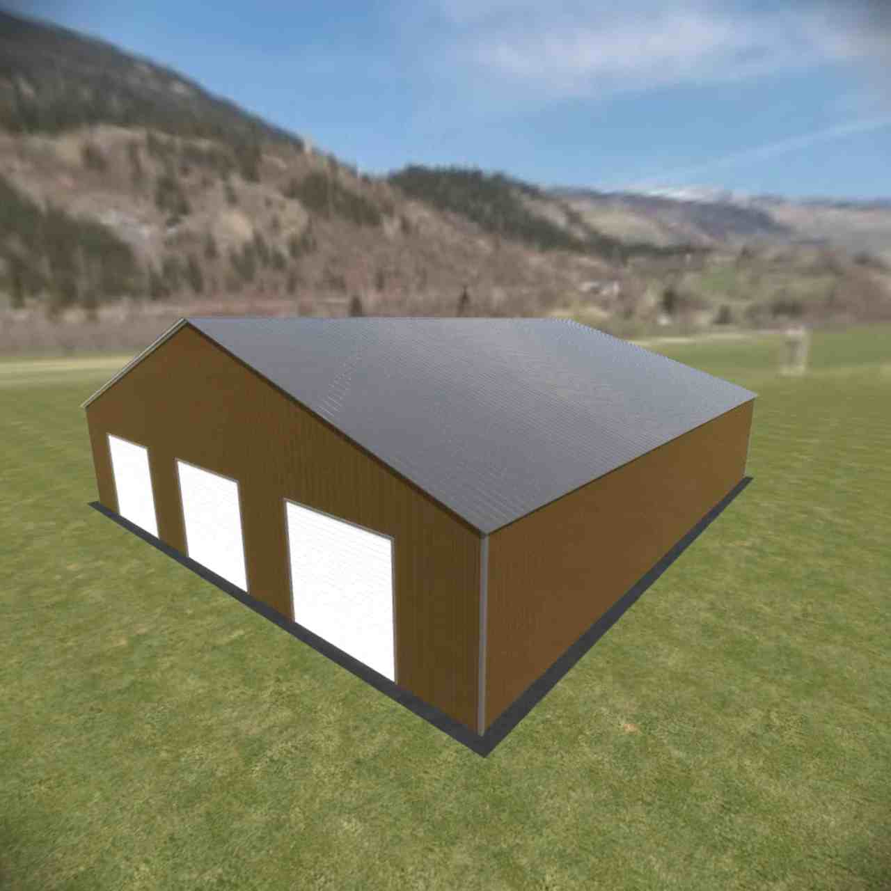 48 wide metal building with 16′ legs and 3 14×14 garage doors with optional deluxe two-tone.