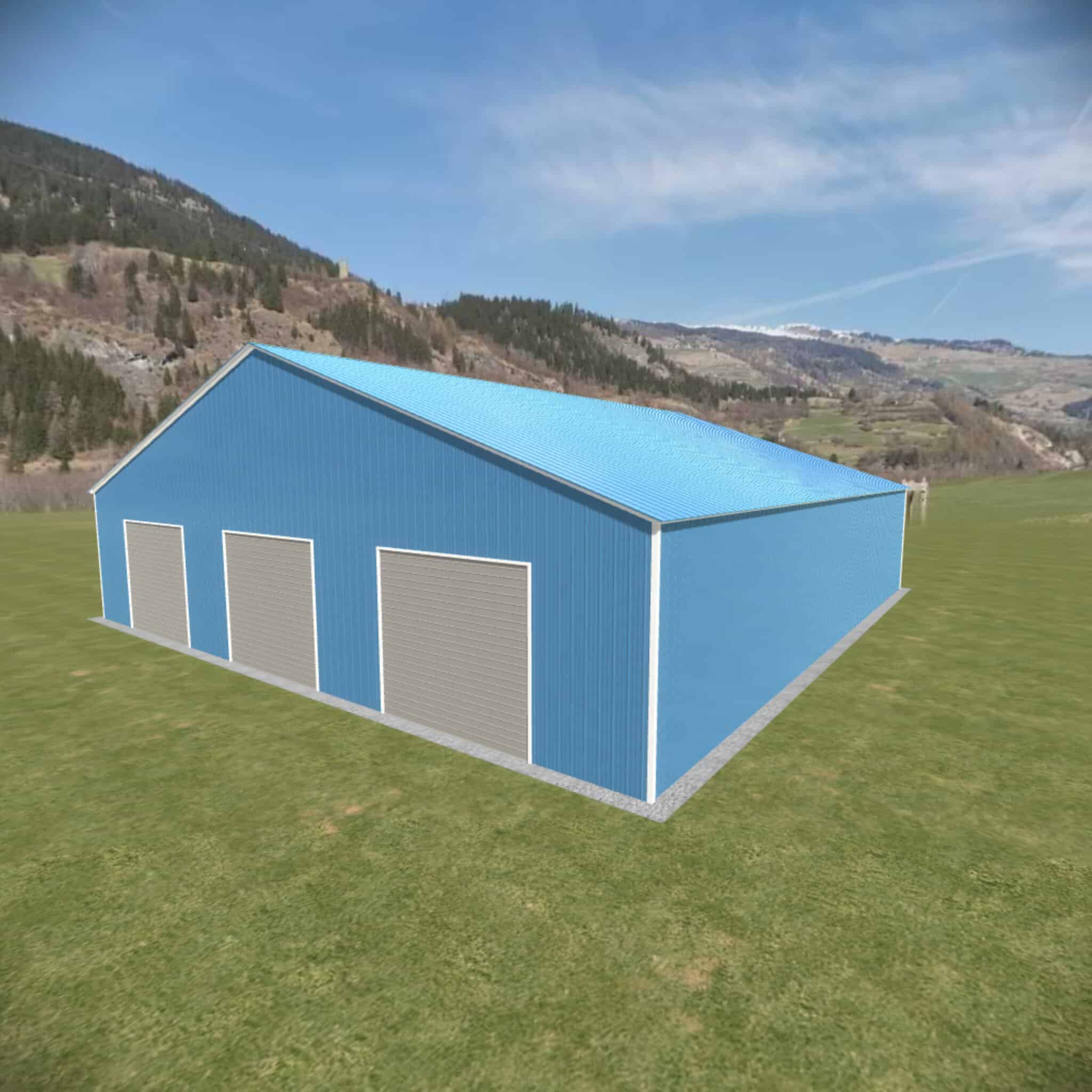 48 wide metal building with 16′ legs and 3 14×14 garage doors with optional deluxe two-tone.