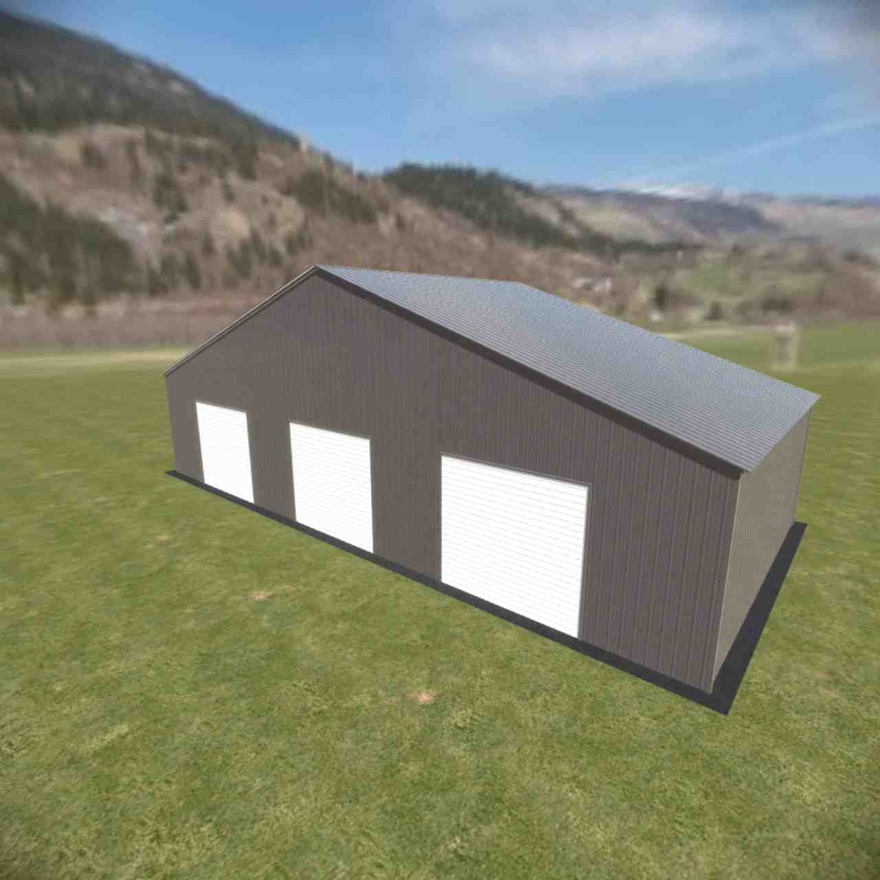 50 wide metal building with 16′ legs and 3 14×14 garage doors with optional deluxe two-tone.