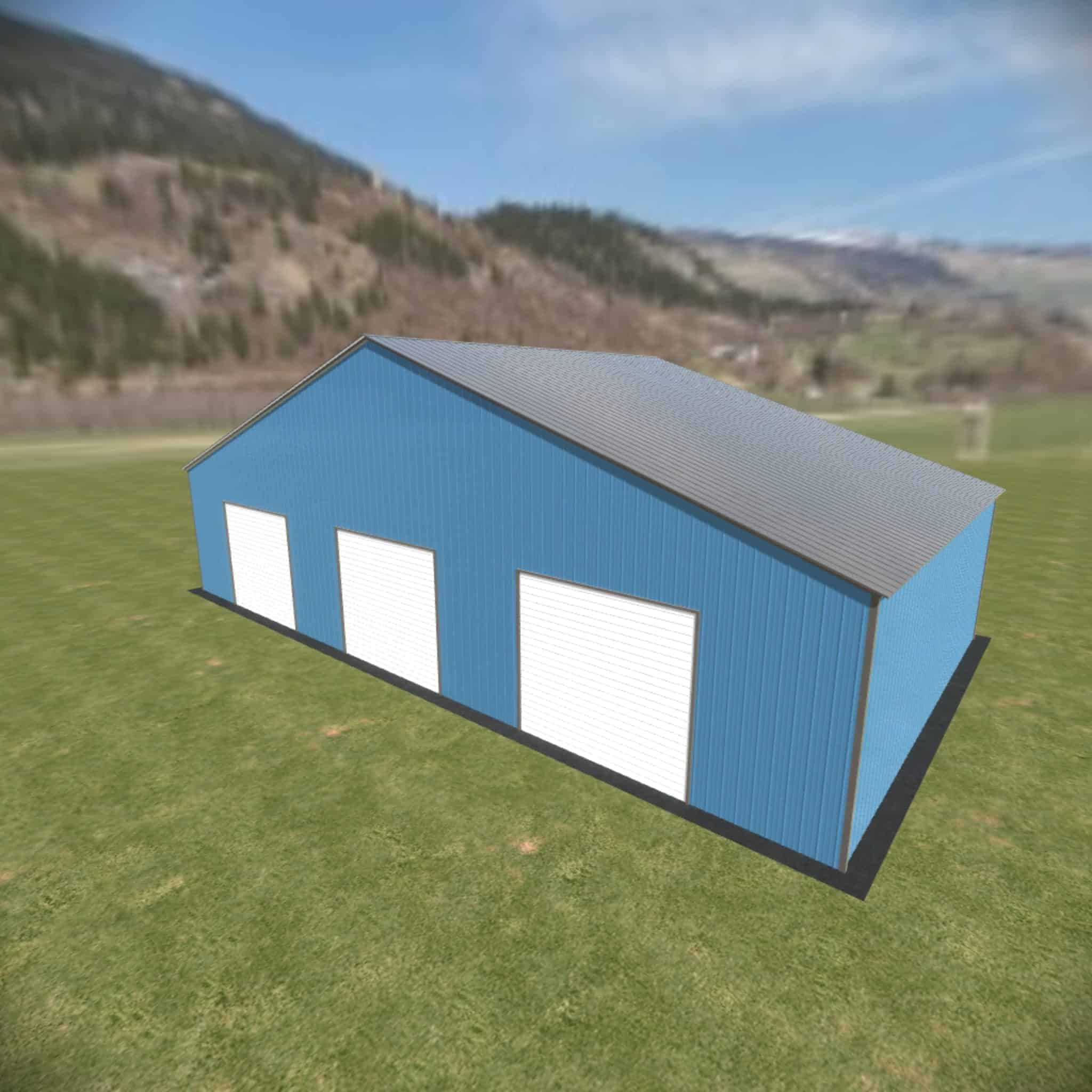 50 wide metal building with 16′ legs and 3 14×14 garage doors with optional deluxe two-tone.